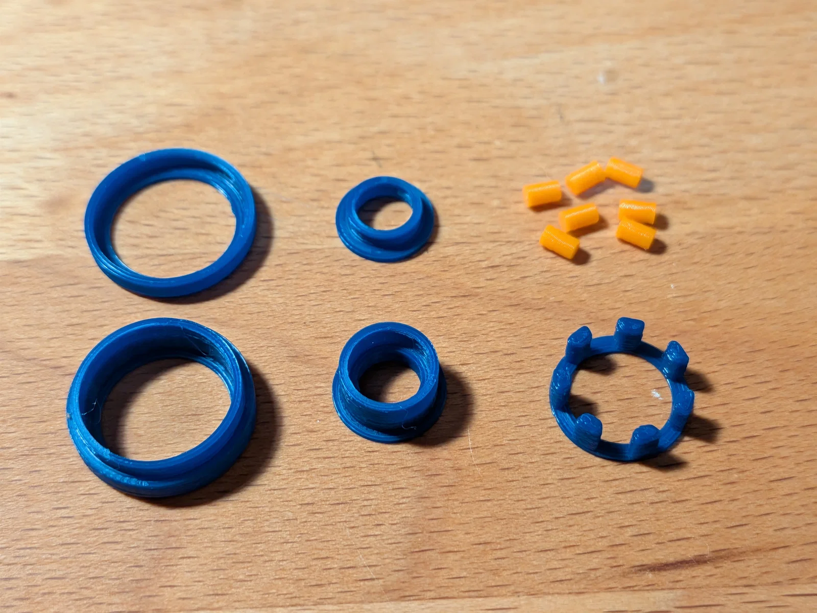 Bao gồm cả con lăn rỗng & đặc. Bạn có thể thay đổi tỷ lệ XY của con lăn trong slicer để tối ưu độ khít (giữ nguyên Z). Đường kính danh định là 2.3 mm, thay đổi 2% tỷ lệ sẽ làm vòng bi khít hơn hoặc lỏng hơn (+/- 0.05 mm đường kính).