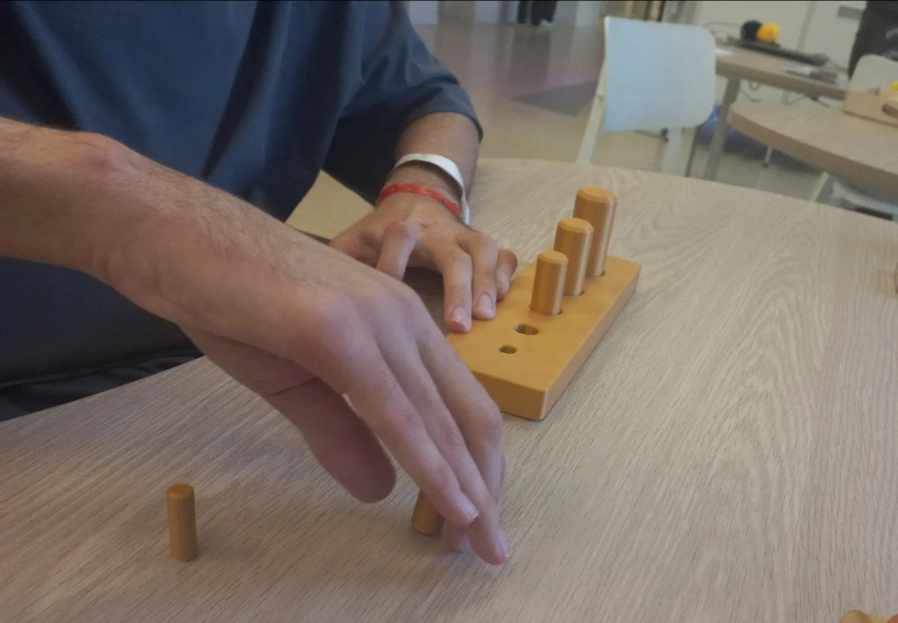 Bộ đồ chơi này là một công cụ hỗ trợ tuyệt vời trong lĩnh vực trị liệu vận động, được thiết kế để rèn luyện sự khéo léo và khả năng phối hợp giữa tay và mắt. Thay vì các trò chơi đơn giản, mô hình này mang đến một thử thách thú vị hơn khi yêu cầu người chơi phải nhận diện và đặt đúng các chốt có chiều cao cũng như đường kính khác nhau vào đúng vị trí lỗ tương ứng trên bảng đế. Đây là bài tập rất hữu ích để cải thiện kỹ năng vận động tinh, hỗ trợ phục hồi chức năng hoặc dành cho trẻ nhỏ đang trong giai đoạn phát triển nhận thức không gian.