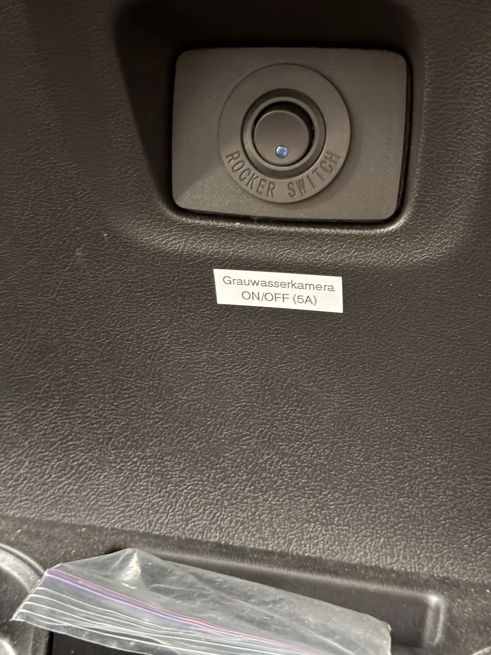 Miếng che này được thiết kế để lắp công tắc cho camera tại vị trí xả nước xám trên bảng điều khiển trung tâm của xe Fiat Ducato 7. Tất nhiên, bạn cũng có thể dùng công tắc này cho mục đích khác tùy ý. Nguồn điện được lấy từ cổng 12V phía trên và dây cáp đã bao gồm thêm một cầu chì bảo vệ.