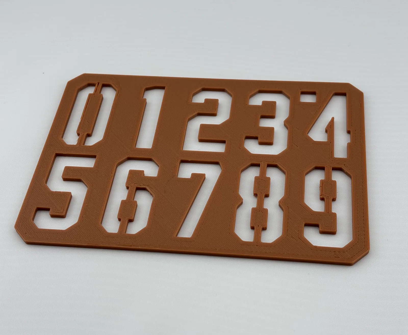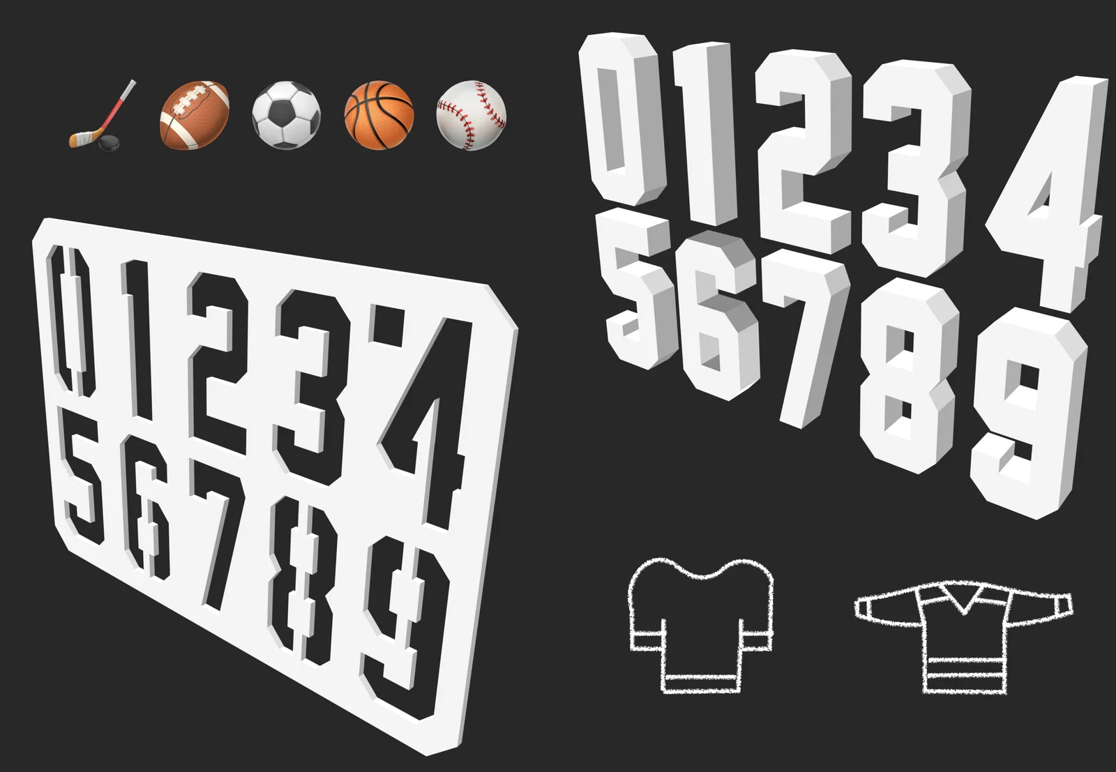 Sản phẩm cực kỳ thích hợp cho các fan hâm mộ thể thao, bao gồm các mô hình số từ 0 đến 9 được thiết kế theo phông chữ áo đấu (jersey font style). Bạn có thể dùng chúng để remix, gắn trực tiếp lên hoặc khắc vào các mô hình khác. Ngoài ra, bộ sản phẩm còn đi kèm một mô hình stencil để hỗ trợ các công việc thủ công nghệ thuật. Tất cả các mô hình đều rất dễ dàng tùy chỉnh kích thước và có thể in được mà không cần dùng support. Mình khuyến khích bạn nên giữ độ dày trục Z của stencil ở mức 2mm hoặc thấp hơn nếu có thay đổi kích thước.