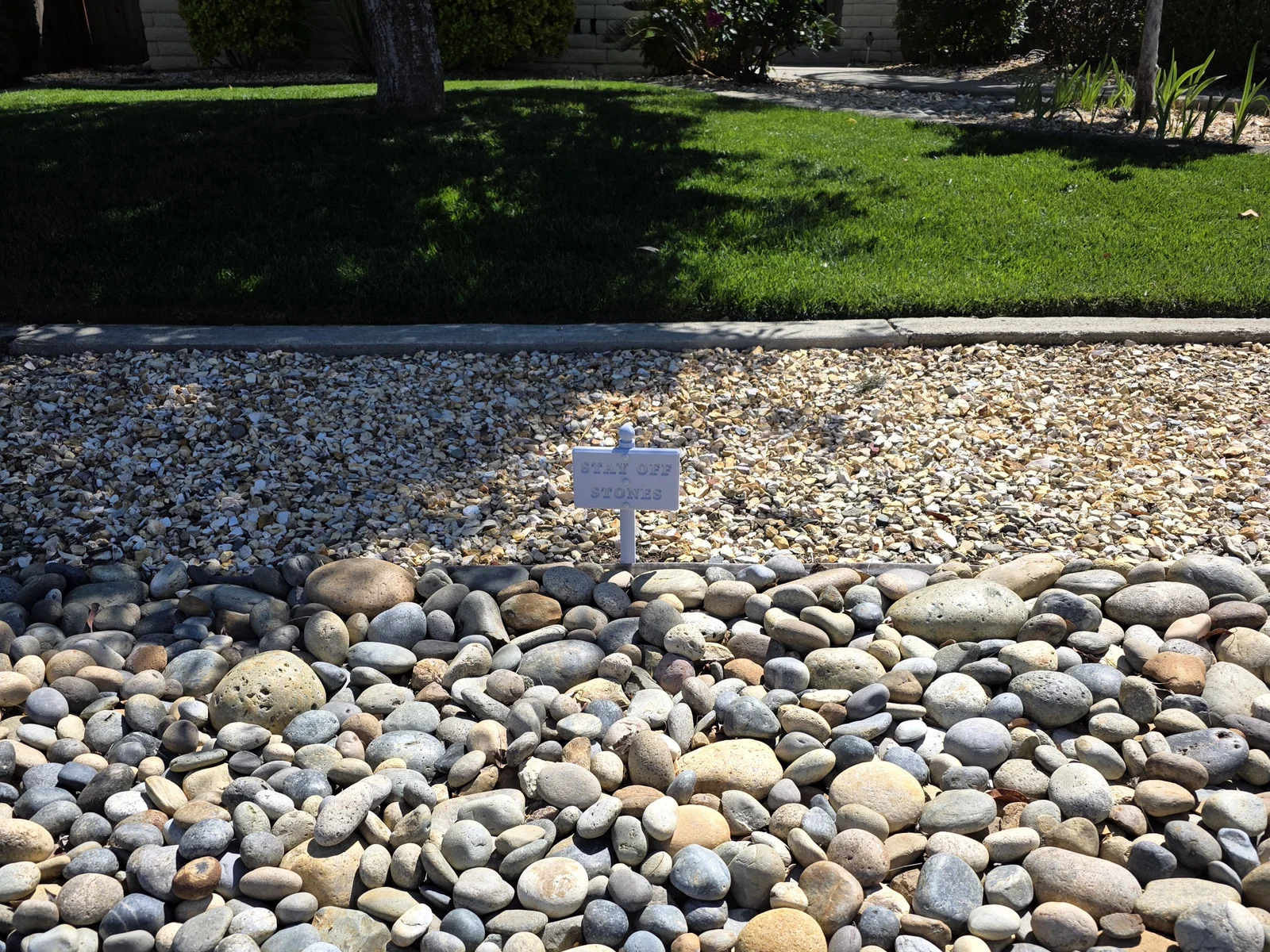 Tôi có một đống đá lớn ở sân trước nhà. Người ta thỉnh thoảng hay dẫm lên đó, rất là nguy hiểm. Có lần tôi thấy anh bưu tá đi ngang qua sau khi trời mưa, suýt chút nữa là trượt ngã. Lại có cả một chị dẫn con nhỏ đến, cứ để bé nhảy lên đống đá như thể đang chơi trò "nhảy lò cò" vậy.