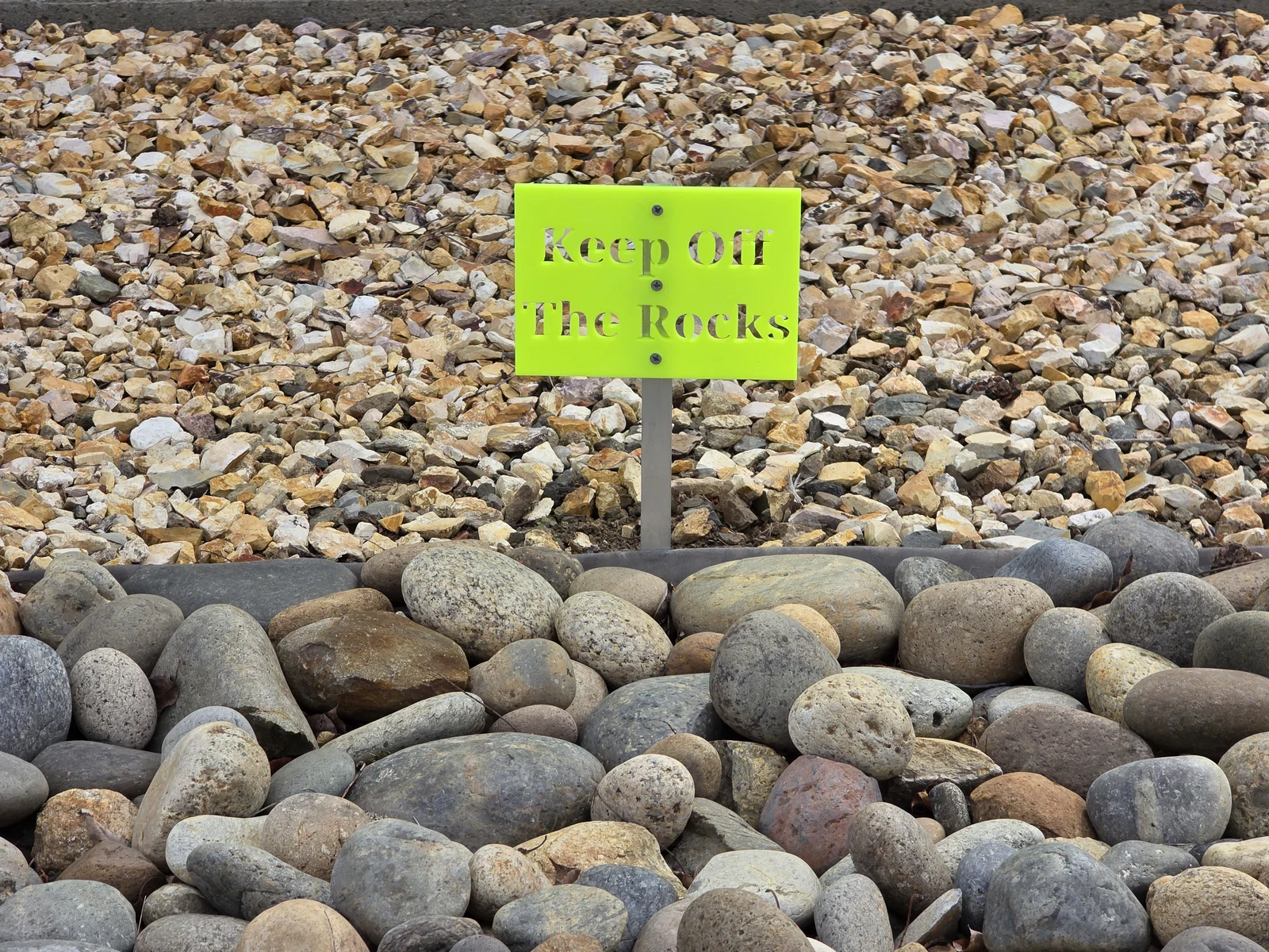 Bảng cảnh báo 'Không giẫm lên đá' giả lập đá Marble