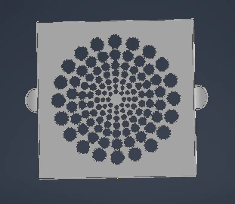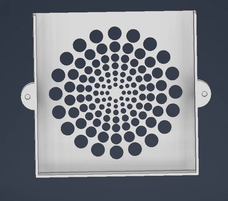 Bản thiết kế vỏ hộp 3D cho bộ lọc than hoạt tính kích thước 115x115x20mm trên máy in Elegoo Centauri Carbon, tích hợp lỗ lắp nam châm 4x3mm tiện lợi.