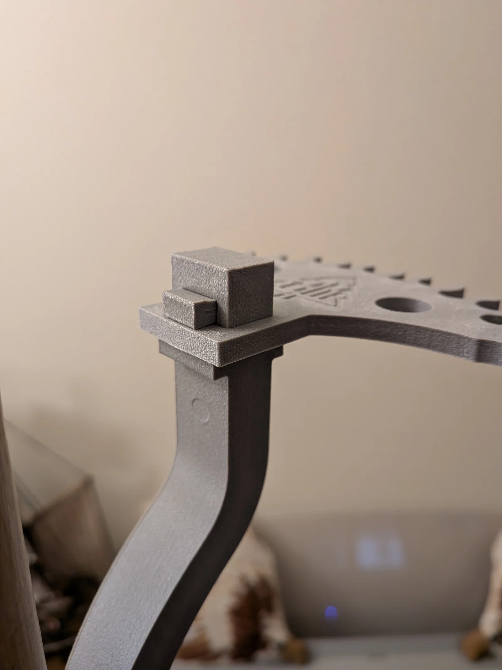 Hãy in phần nêm (wedge) ở mức 100% và nhớ làm sạch hiện tượng chân voi (elephant foot) để đảm bảo các bộ phận khớp với nhau hoàn hảo. Hiện tại mình vẫn đang gặp chút khó khăn trong việc gắn nó vào cung vì nó cứ bị xoay, và thiết kế này cũng chưa giải quyết được vấn đề đó.