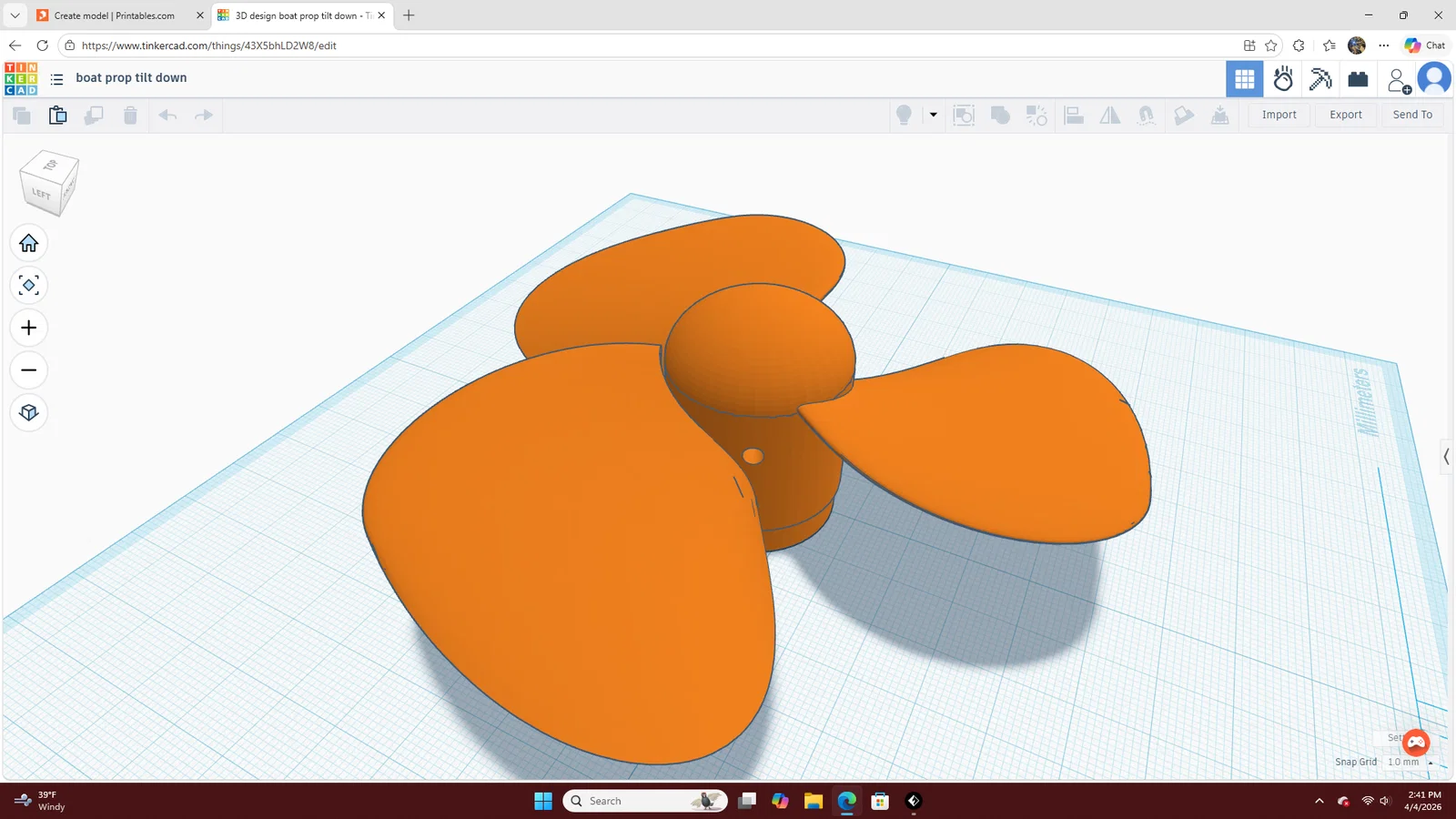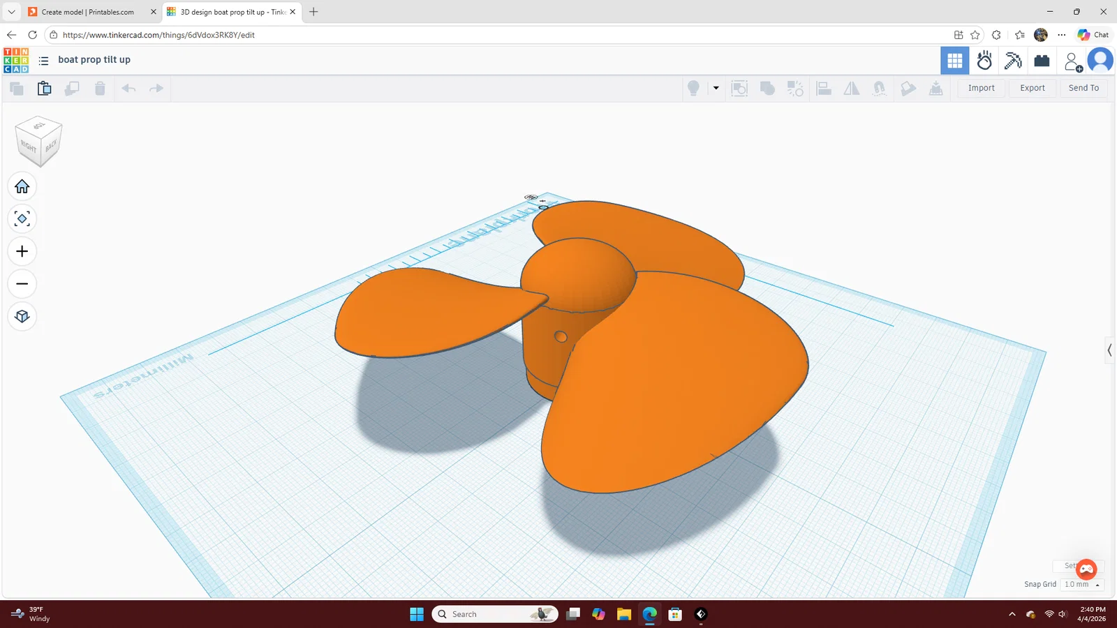 Mình đã in mẫu này bằng nhựa PLA-CF với độ đặc (infill) 15%, 4 lớp vỏ (wall loops), nhiệt độ bàn in 60°C, nhiệt độ đầu in 240°C, sử dụng hỗ trợ (tree supports) và tốc độ quạt tối đa là 45%. Mình chưa kiểm tra độ bền của cánh quạt này nên rất mong nhận được góp ý của mọi người để làm cho nó tốt hơn.