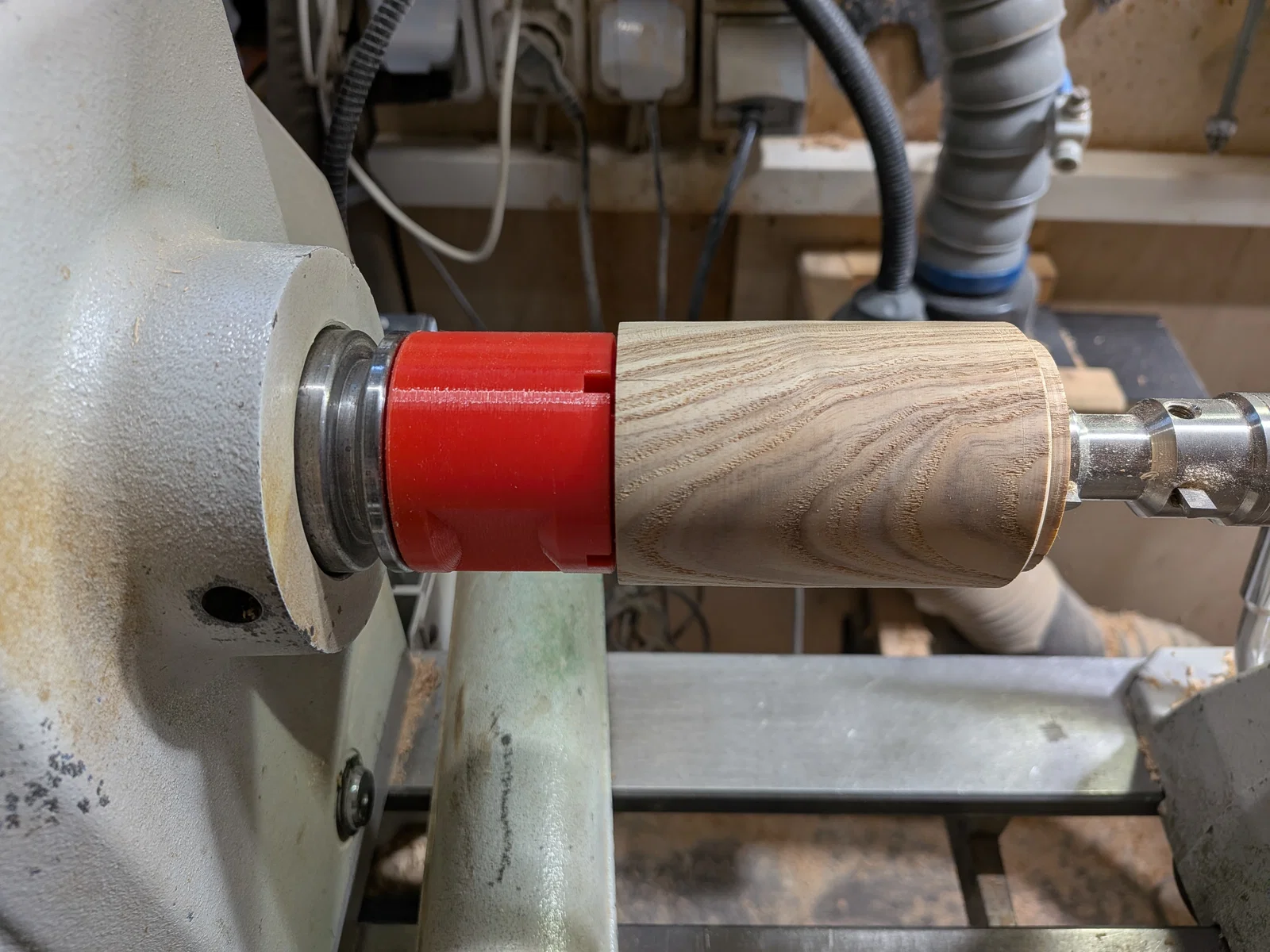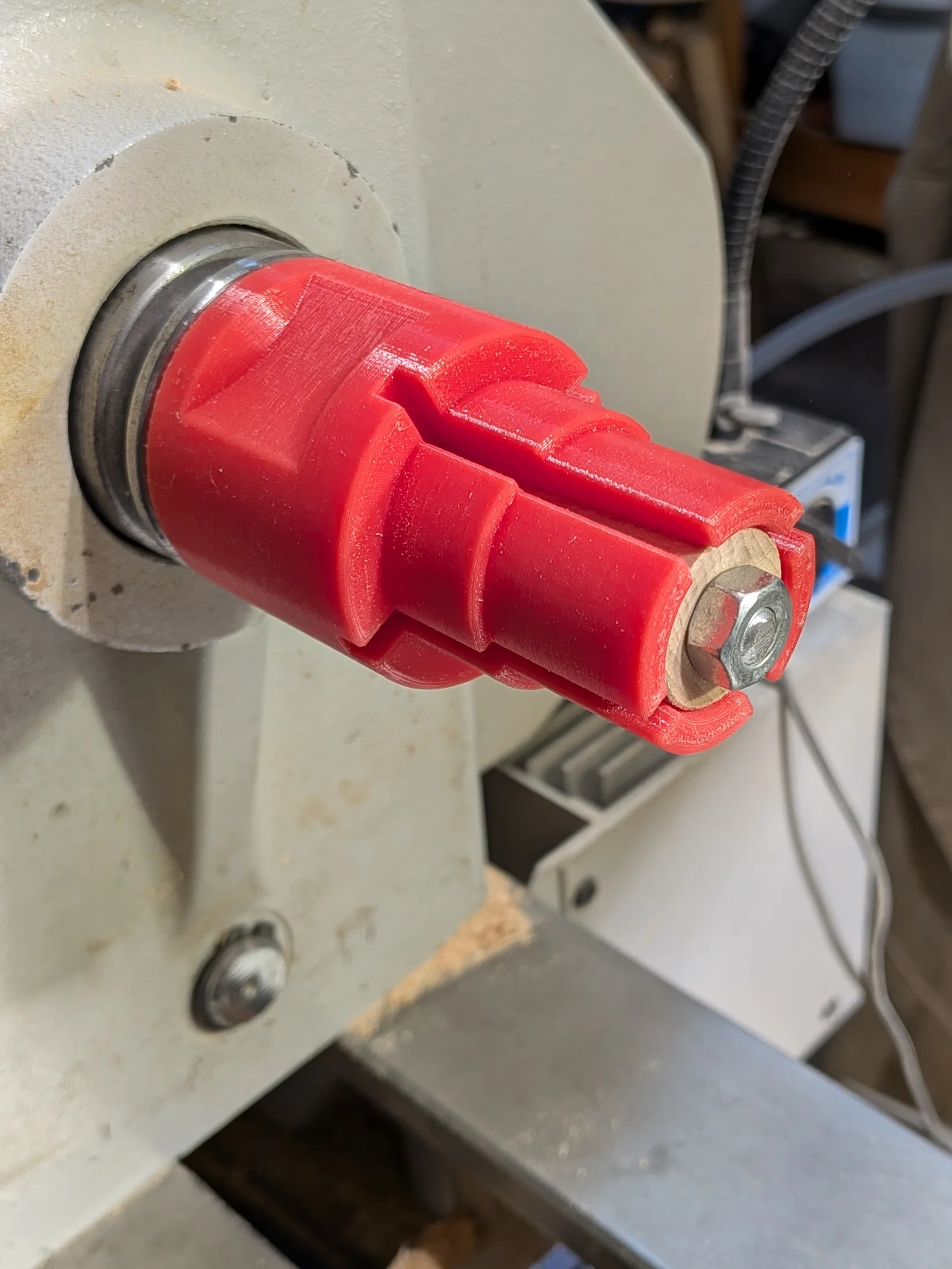 Phụ kiện này giúp tiết kiệm rất nhiều thời gian trong quy trình tiện gỗ trên máy. Thay vì phải làm mới các gá kẹp thủ công mỗi khi thay đổi phôi, bạn chỉ cần sử dụng gá in 3D này để giữ chặt bộ phận cơ khí của máy nghiền vào vị trí trung tâm của máy tiện. Sự ổn định mà thiết bị này mang lại giúp các đường tiện của bạn mượt mà, chuẩn xác hơn, giảm thiểu tối đa các sai số không đáng có trong quá trình hoàn thiện sản phẩm cối xay.