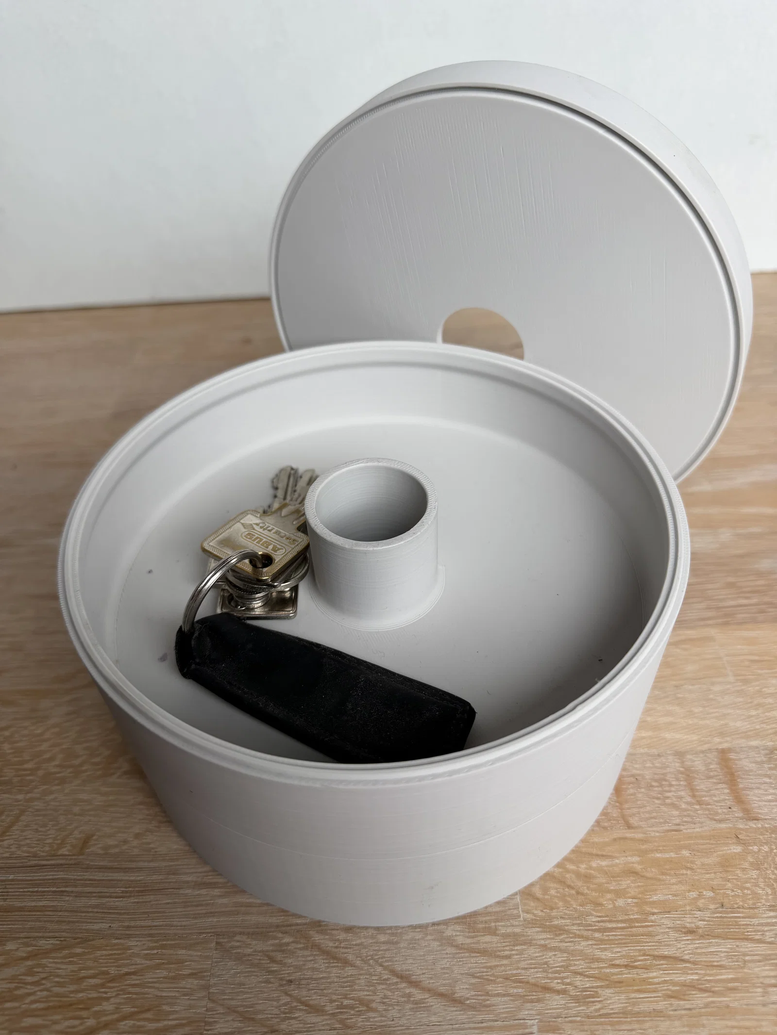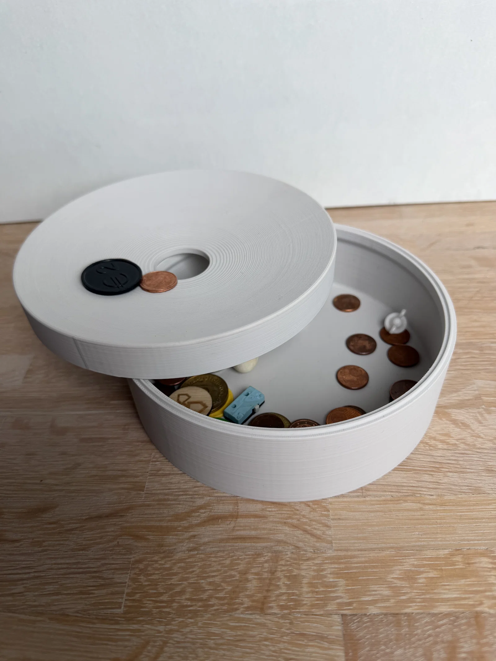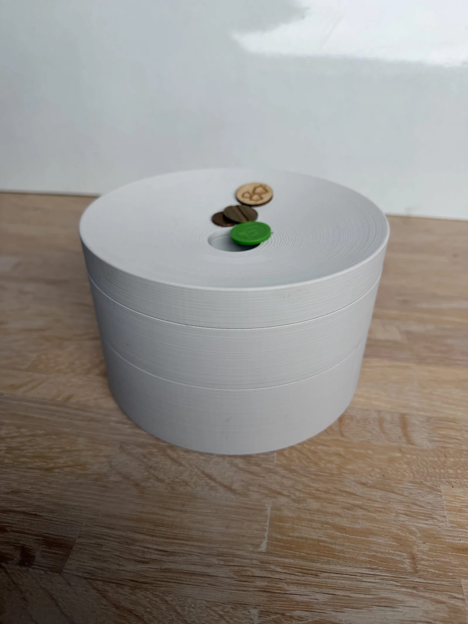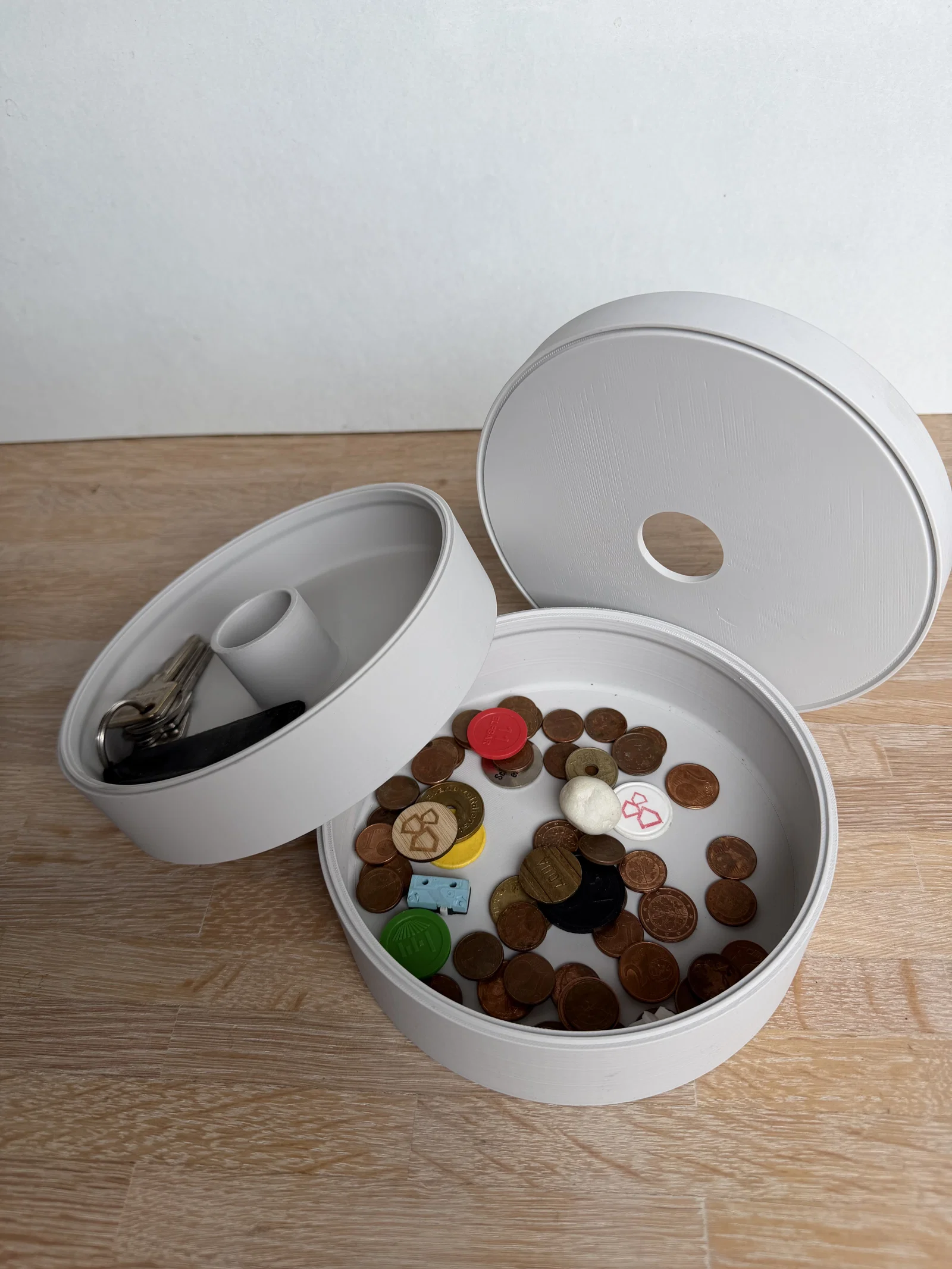 Cái tháp lưu trữ theo mô-đun, theo phong cách tối giản này vốn được phát triển từ một khay đựng tiền xu thành một hệ thống lưu trữ linh hoạt hoàn toàn. Mỗi phần hình trụ có thể chứa tiền xu, chìa khóa hoặc các vật dụng nhỏ. Phần nắp trên có lỗ thả đồ, giúp dẫn hướng vật dụng rơi vào trong. Bạn cũng có thể thêm nắp phẳng (không lỗ) nếu muốn đóng kín hoàn toàn. Các phần có thể chồng lên nhau, mở rộng hoặc thu gọn tùy ý, kèm theo các tùy chọn nắp khác nhau, tạo nên một chiếc hộp tổ chức đa năng. Bạn nên in bằng nhựa PLA (độ cao lớp 0.2mm), không cần sử dụng support. Có thể chà nhám nhẹ để đạt độ mịn như ý.