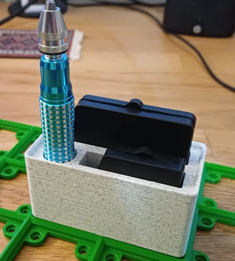 Bộ khay Gridfinity tiện dụng được thiết kế riêng cho tay cầm kẹp mũi khoan Donau và các bộ mũi khoan HSS. Bao gồm tùy chọn đặt nằm hoặc đứng để phù hợp với không gian lưu trữ của bạn. Dễ in, không cần hỗ trợ.