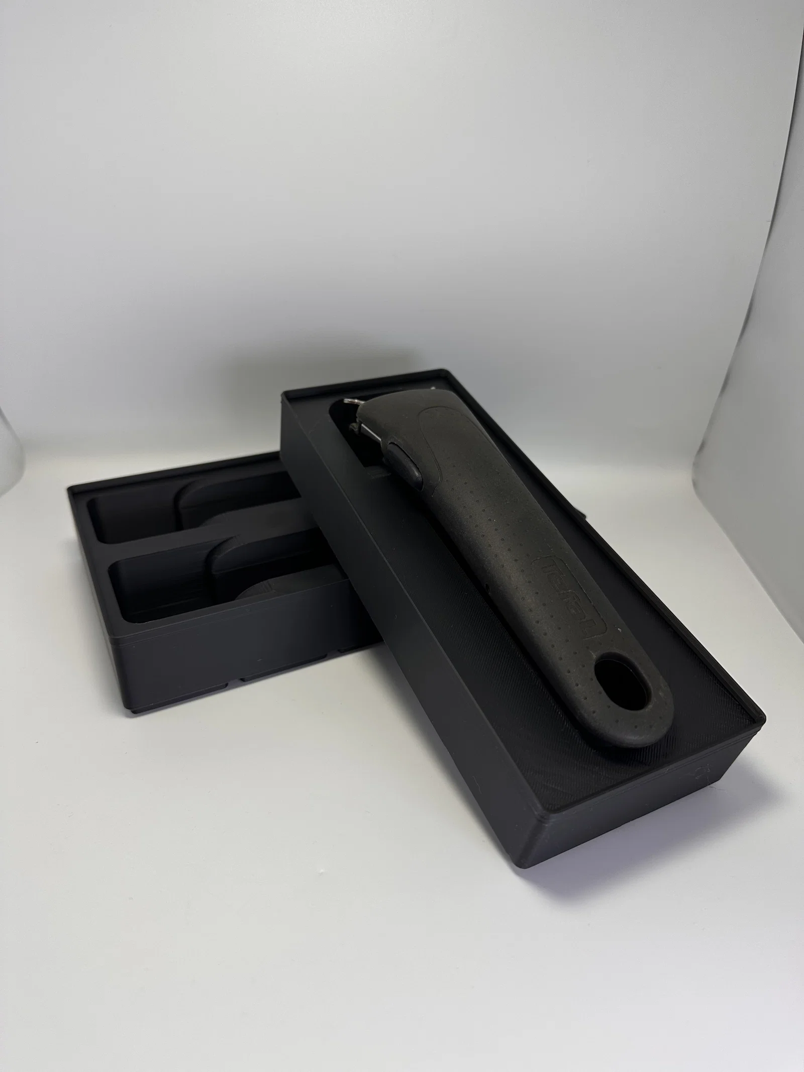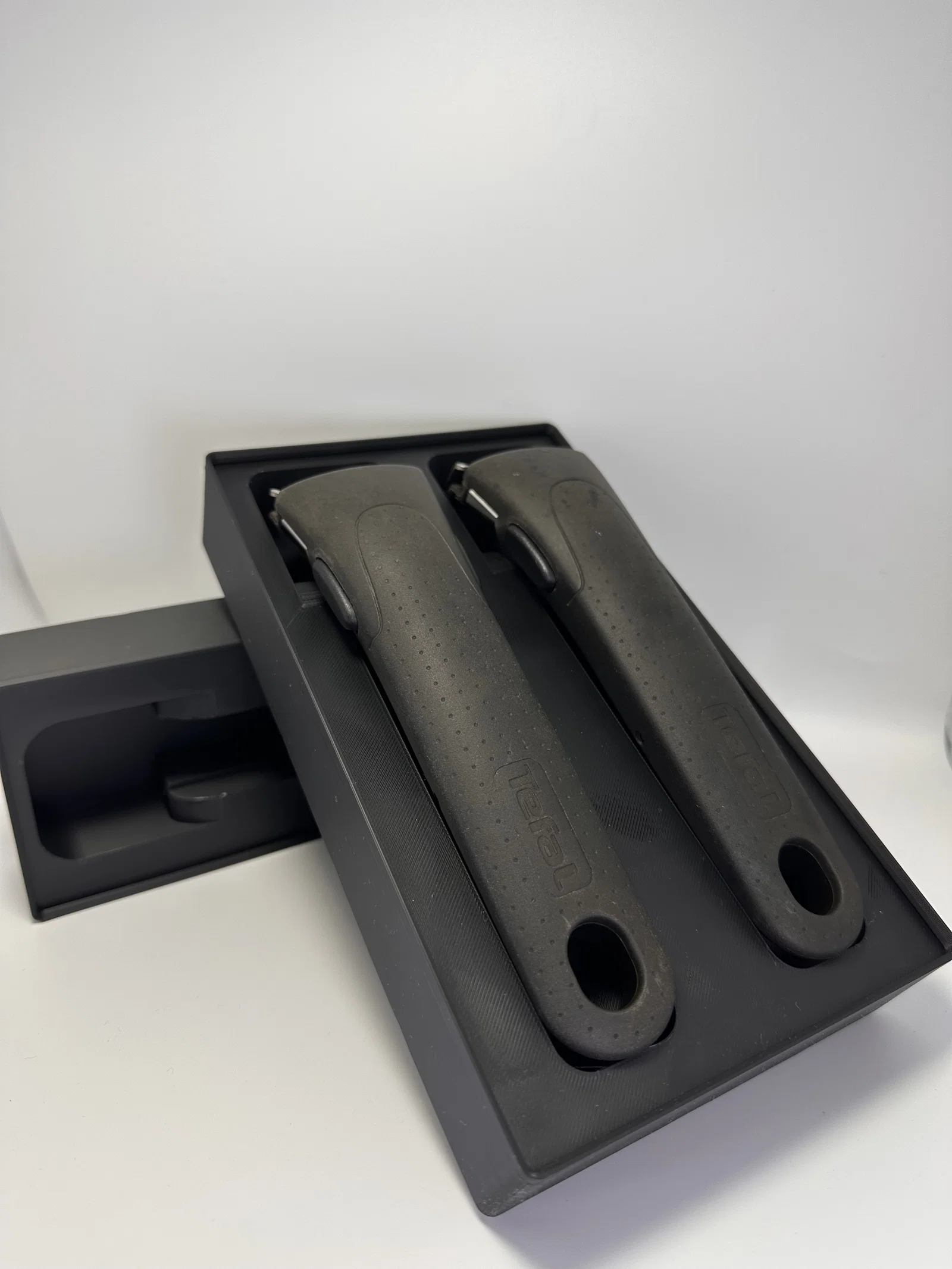 Nếu bạn là người yêu thích sự gọn gàng trong căn bếp và đang sử dụng bộ nồi chảo thông minh Tefal Ingenio với phần tay cầm tháo rời, thì chắc chắn bạn sẽ hiểu nỗi khổ khi tìm chỗ cất những chiếc tay cầm này. Chúng thường nằm lăn lóc trong ngăn kéo, chiếm diện tích và trông rất thiếu thẩm mỹ. Khay in 3D này được thiết kế theo tiêu chuẩn Gridfinity, giúp bạn giải quyết triệt để tình trạng lộn xộn, mang lại sự chuyên nghiệp và ngăn nắp tuyệt đối cho không gian nấu nướng của mình.