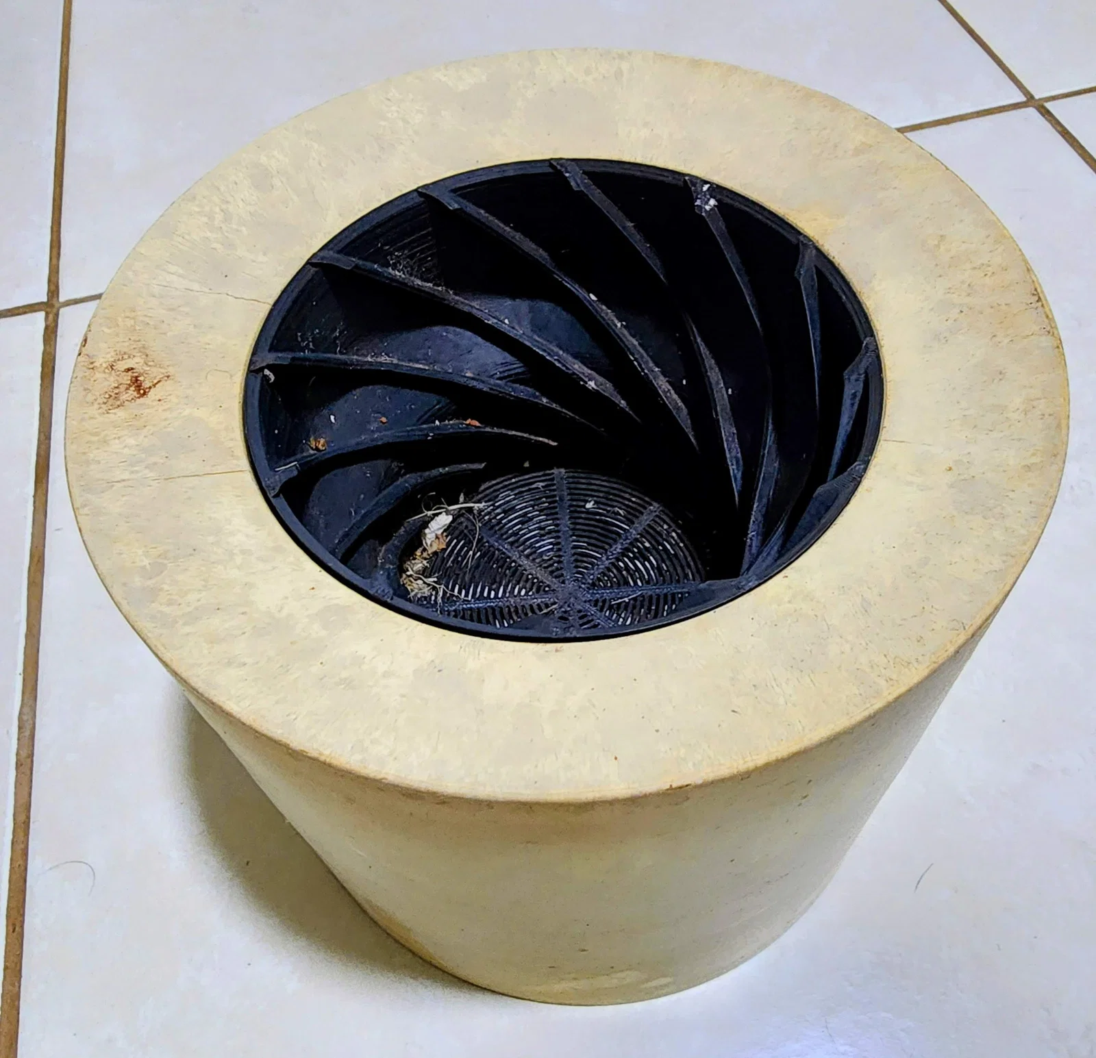 Tối ưu hóa dòng chảy (Cánh quạt chéo): Thiết kế bên trong có các cánh quạt được đặt nghiêng. Khi máy bơm hút, các cánh này ép nước chuyển động theo hình xoáy. Việc tạo ra dòng xoáy này giúp giảm bớt sự nhiễu loạn hỗn loạn và giúp nước chảy đều đặn hơn vào đường ống.
