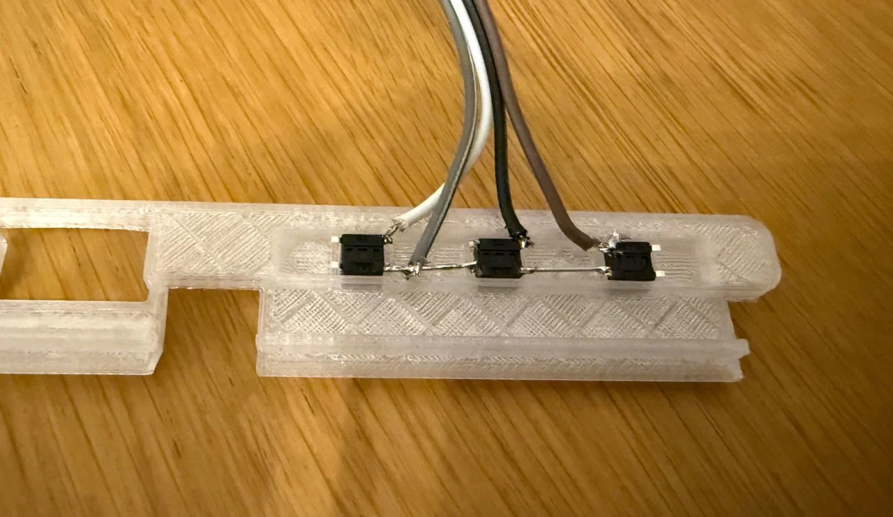 Thiết kế sử dụng loại switch 4.5x4.5mm với phần thân nút khá dài (của mình là 4.5x4.5x7mm). Bạn sẽ cần dùng keo nến để cố định các nút này vào vị trí (cách này vừa đơn giản lại giúp giảm áp lực lên các mối hàn nhỏ, sau này mình sẽ tìm cách cải tiến thêm).