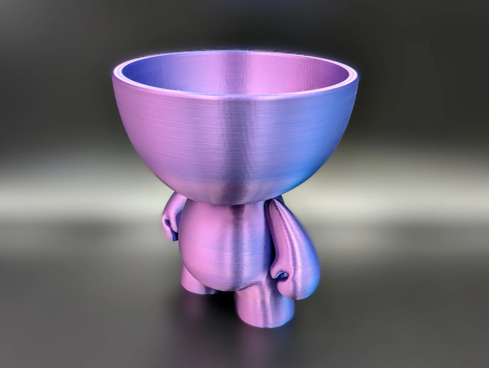 Một mô hình nhân vật cách điệu với phần đầu hình chiếc tô, vừa là vật trang trí độc đáo vừa là hộp đựng tiện lợi cho kẹo, chìa khóa hoặc đồ dùng văn phòng. Thiết kế vững chãi, dễ in, cho phép thay đổi kích thước linh hoạt theo nhu cầu sử dụng của bạn.