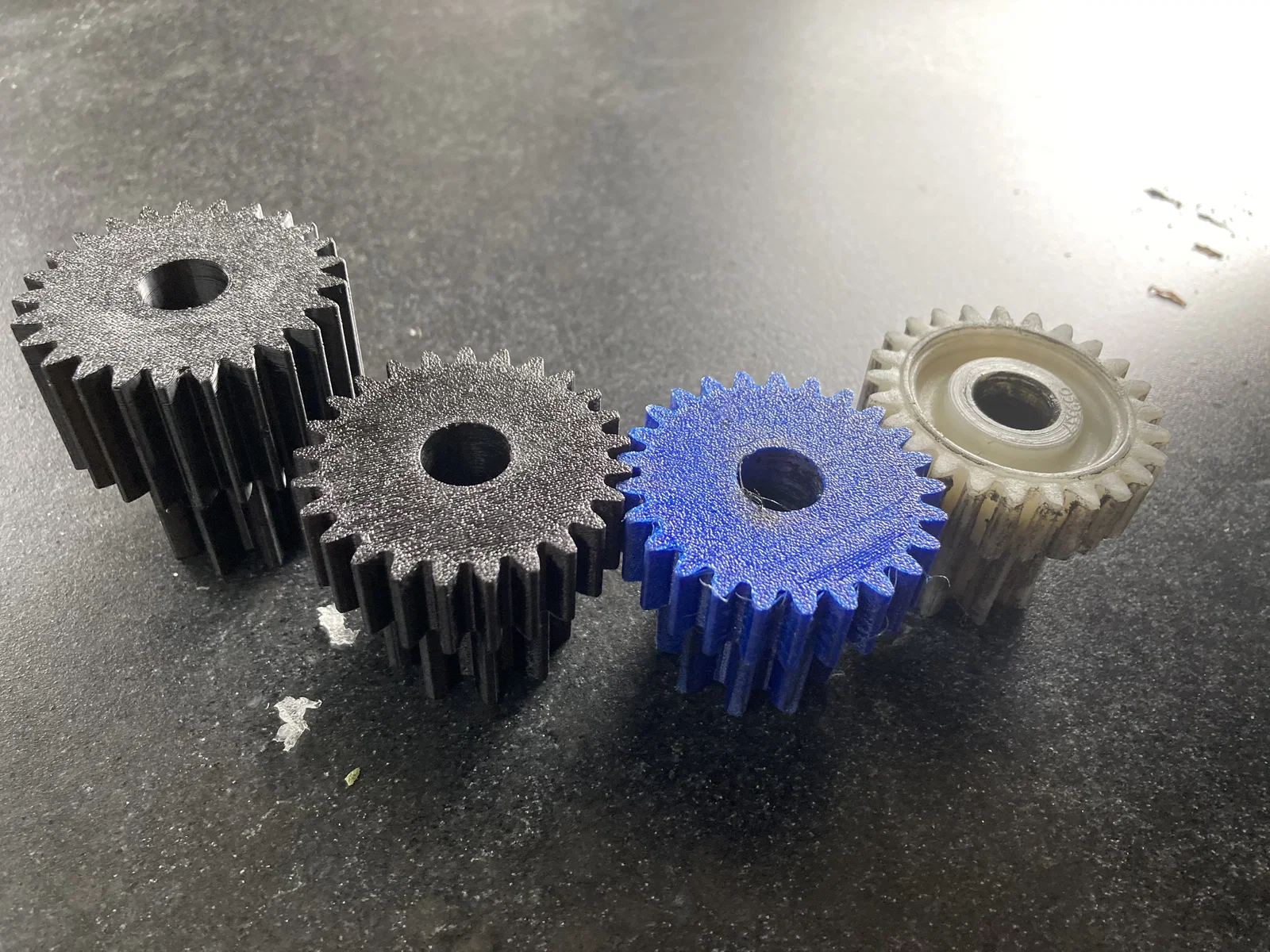 Để đạt độ bền tốt nhất, nên in bằng nhựa Nylon (không pha carbon fiber). Mình đã thử in với 5 lớp thành (perimeters) và độ phủ (infill) 40%.