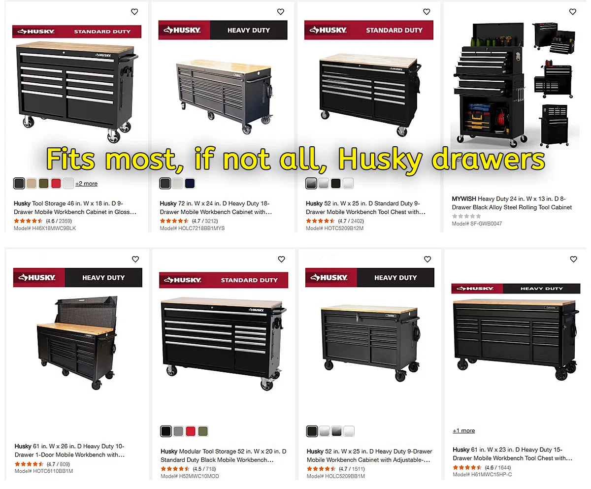 Đây là mẫu bảng tên kẹp vào tay cầm ngăn kéo cho hầu hết, nếu không muốn nói là tất cả, các dòng tủ dụng cụ và bàn làm việc di động thương hiệu Husky được sản xuất và phân phối bởi "Home Depot" tại Mỹ. Tôi không rõ liệu các sản phẩm này có bán ở quốc gia khác hay không. Các dòng tủ này có nhiều mẫu mã khác nhau, nhưng đều có chung đặc điểm là có các ngăn kéo (xem ảnh đính kèm).