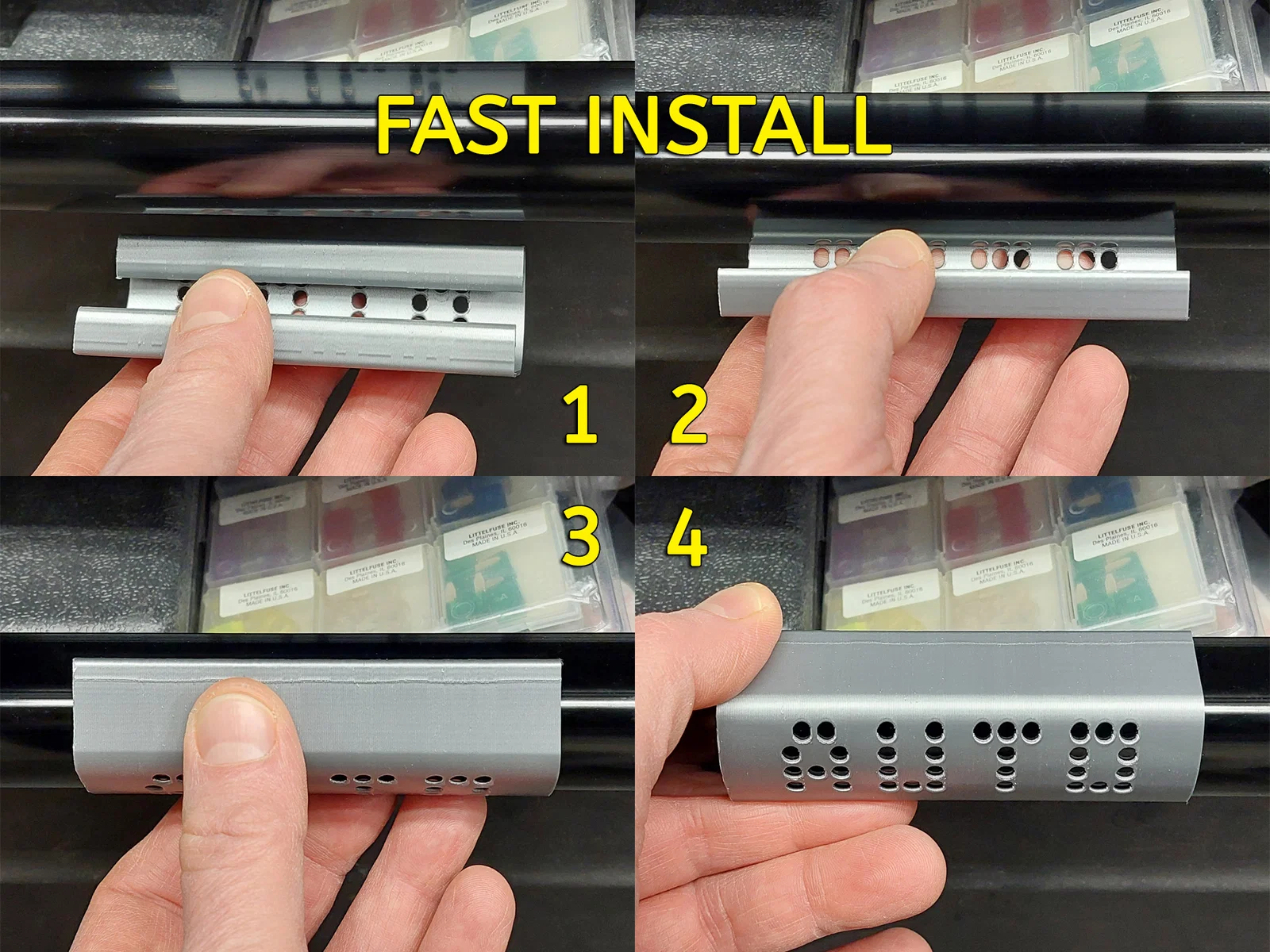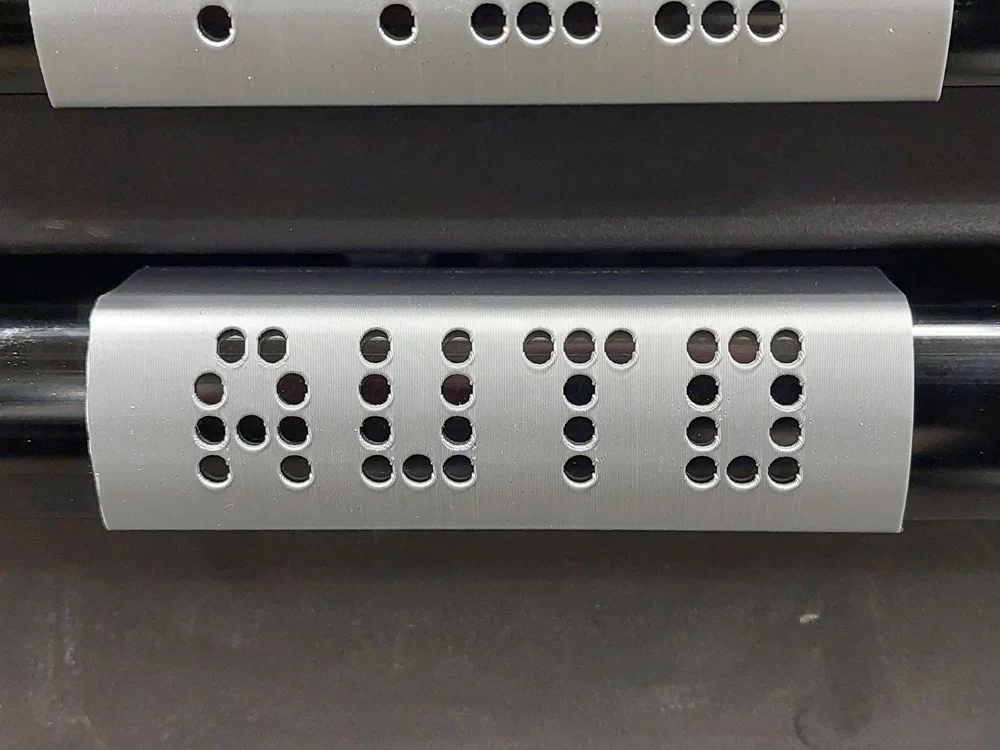 Tôi đã đính kèm hai kích thước nhãn trống, một nhãn mẫu ("AUTO") và một bộ chữ cái dạng chấm (dot pattern) để bạn có thể tự tạo nhãn riêng nếu biết sử dụng phần mềm thiết kế 3D. Bạn có thể kéo giãn các nhãn trống để thay đổi chiều rộng, nhưng lưu ý đừng scale (thay đổi tỷ lệ) toàn bộ vì nó sẽ không còn khớp với tay cầm Husky nữa. Tôi giả định rằng hầu hết những ai in 3D đều có khả năng chỉnh sửa vật thể 3D cơ bản. Các chữ cái dạng chấm được thiết kế dưới dạng khoảng trống (negative space) để tạo chữ cắt trên nhãn. Tôi cung cấp bộ chữ cái này vì không thể nào tạo ra tất cả các nhãn cho mọi nhu cầu được.