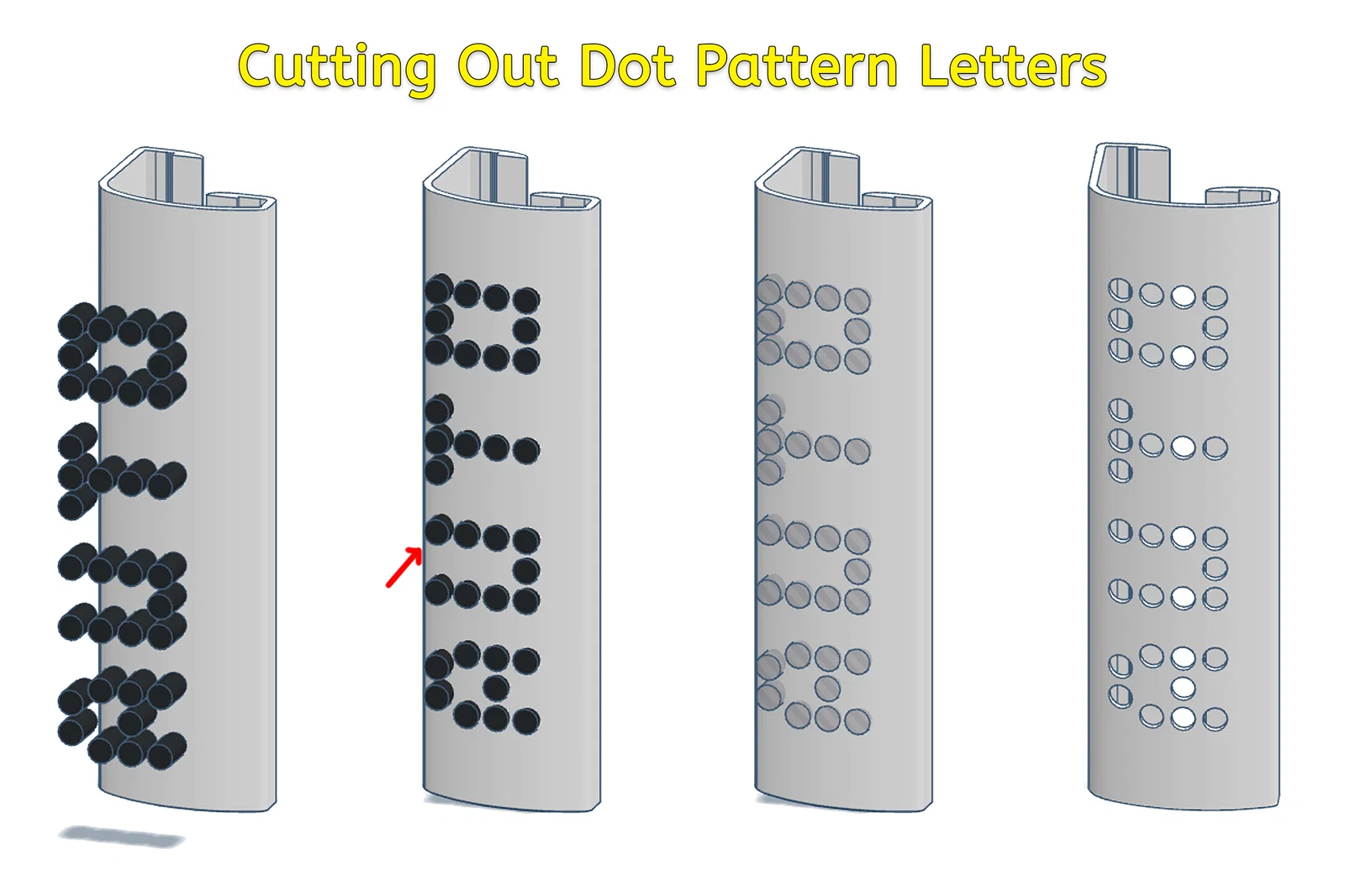 LƯU Ý: Tôi không thực sự ưng ý với kiểu chữ chấm này lắm (nó làm tôi nhớ đến phong cách thập niên 70-80), nhưng tôi vẫn chọn nó vì có thể in được mà không cần hỗ trợ (supports). Tôi lo rằng nếu in chữ dạng khác, việc bắc cầu (bridging) sẽ khó thành công do thành nhãn mỏng và mặt nhãn bị cong. Cách lý tưởng nhất là dùng máy in 2 đầu phun để in 2 màu, nhưng vì tôi chỉ có máy 1 đầu phun và không có AMS, nên tôi ưu tiên các mẫu in 1 màu cho tiện.