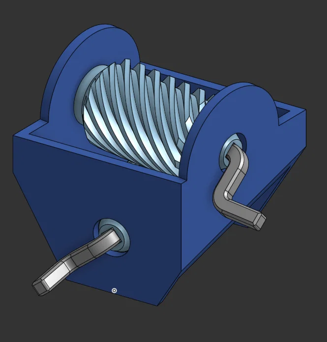 Bộ đồ chơi fidget gồm hai bánh răng trục vít đặt ở góc 80 độ. Khi xoay tay quay, bánh răng sẽ chuyển động nhịp nhàng. Sản phẩm in 3D thú vị, dễ lắp ráp, hoàn hảo để giải trí và giảm căng thẳng.