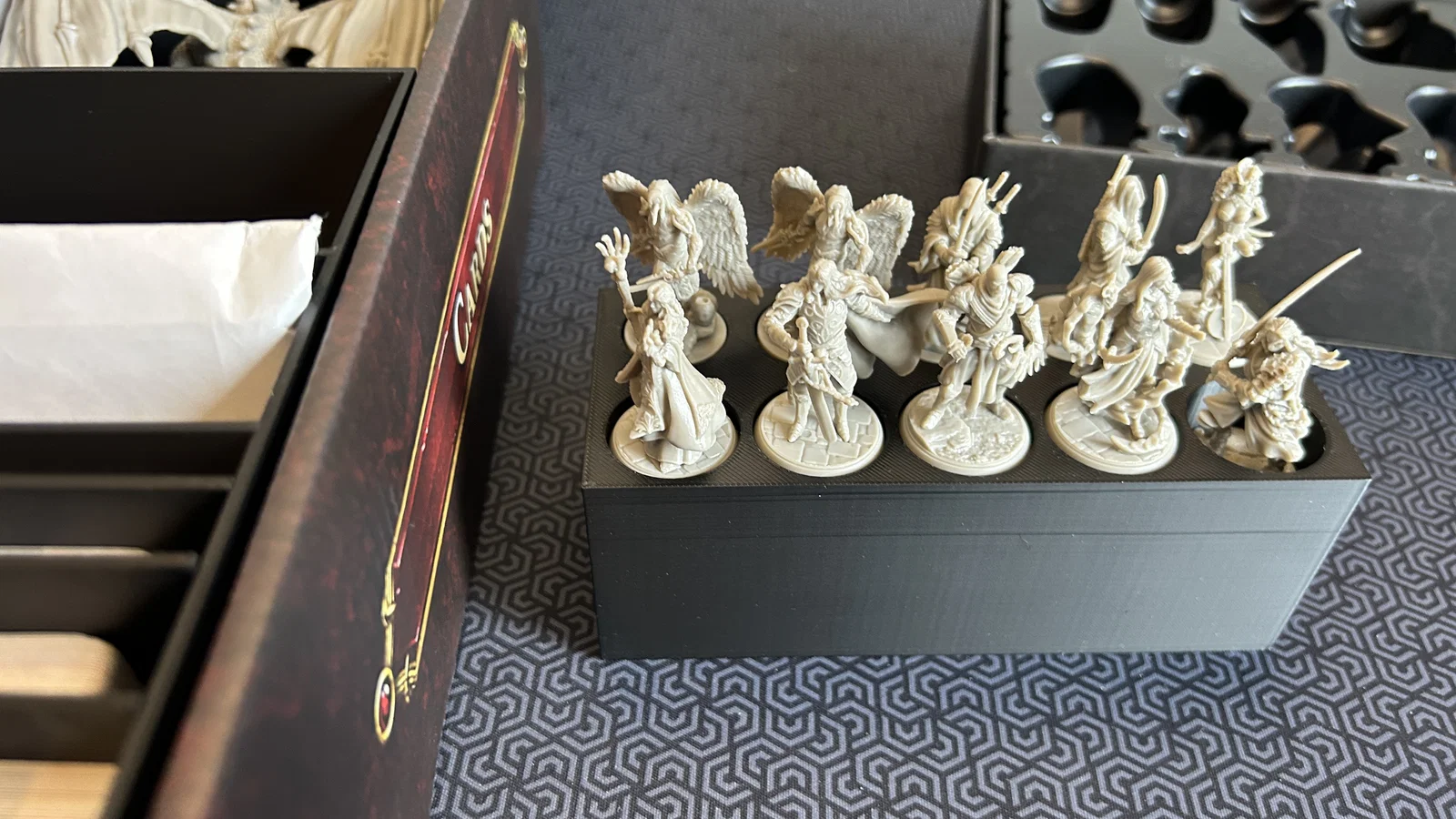 Mẫu khay in 3D chuyên dụng thay thế khay giấy mặc định cho Ultimate Tanares Adventures. Giúp sắp xếp thẻ bài ngăn nắp, phân loại khoa học với vách ngăn chắc chắn và có thêm không gian lưu trữ 10 mô hình nhân vật stretch goal cực tiện lợi.