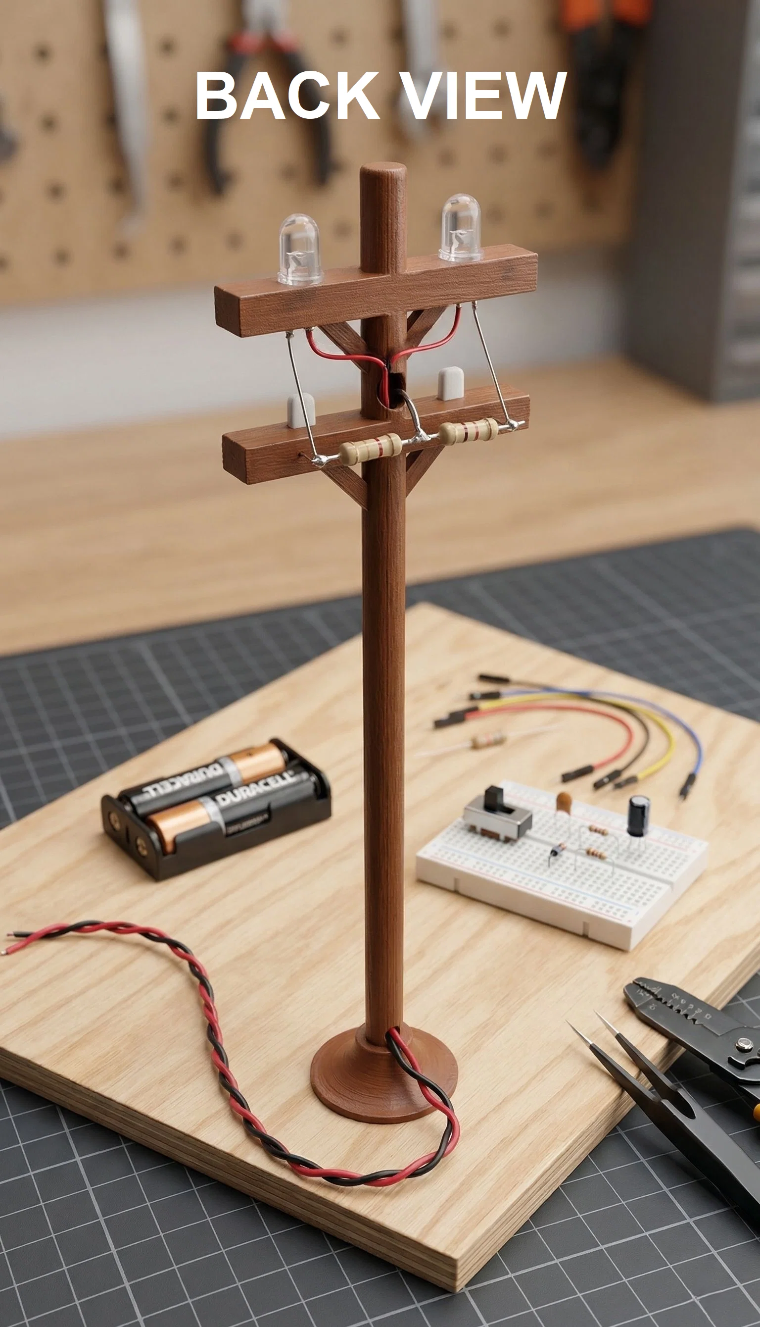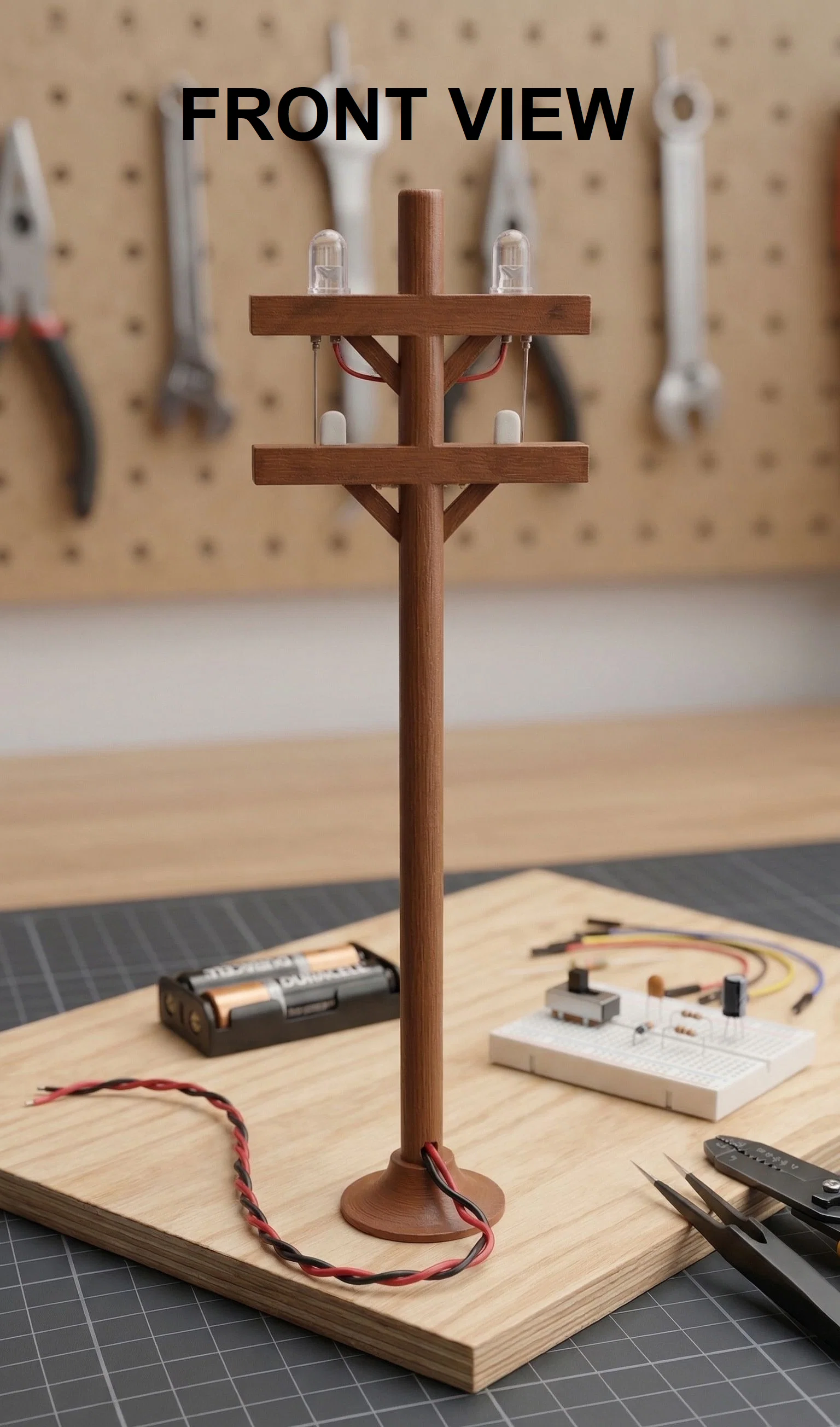 Mô hình cột điện gỗ thu nhỏ được lấy cảm hứng từ các trụ phân phối điện ngoài đời thực, thiết kế dành riêng cho những dự án chiếu sáng LED đơn giản và mô hình diorama.