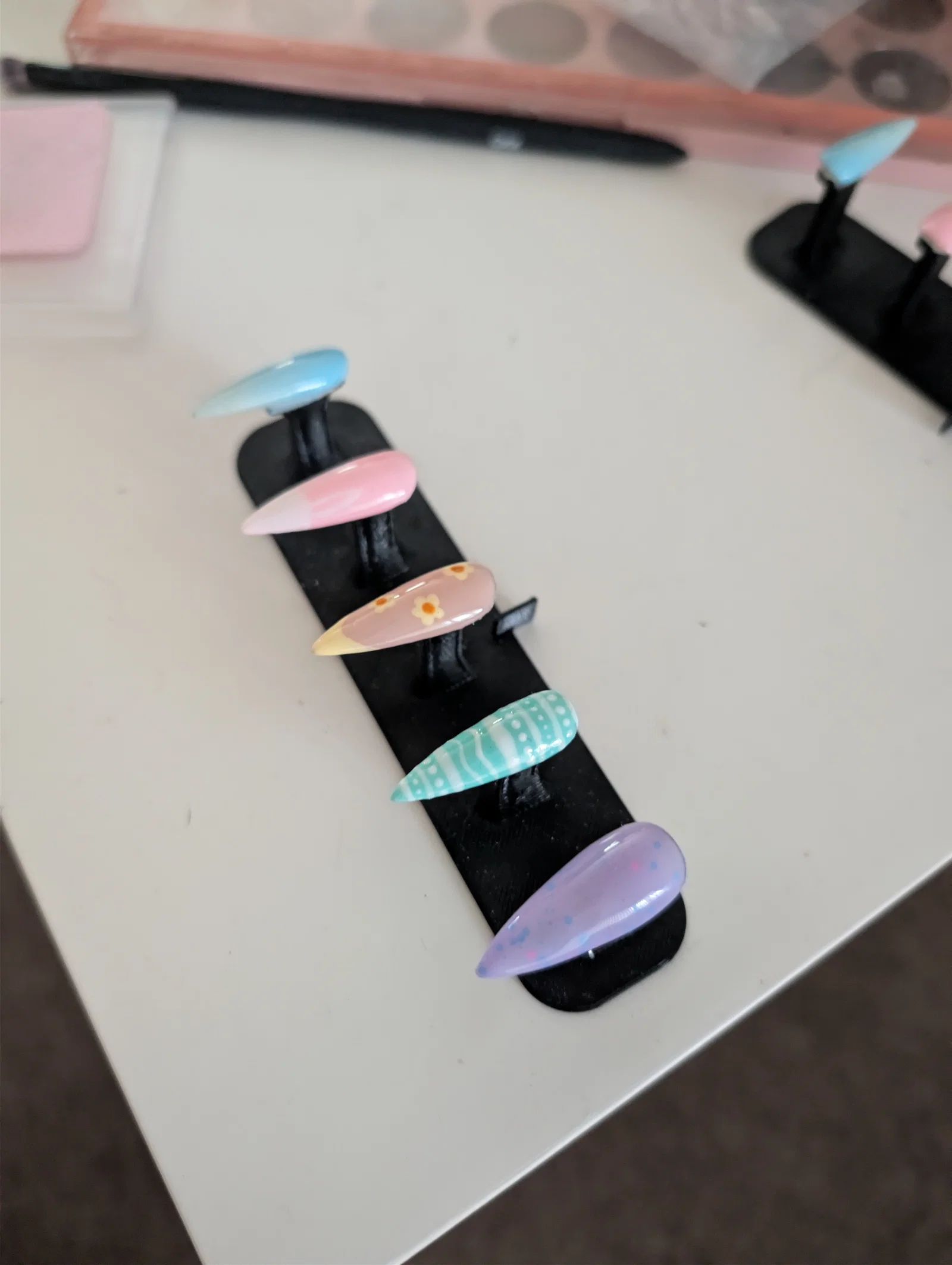 Bạn đang tìm kiếm một phụ kiện giúp việc làm móng giả (press-on nails) trở nên dễ dàng và chuyên nghiệp hơn? Hãy thử ngay mẫu đế gắn móng (Nail Stand) dạng một hàng đơn vô cùng tiện lợi này. Đây là phiên bản rút gọn được thiết kế đặc biệt để giúp bạn thao tác trên từng bàn tay một cách gọn gàng, chính xác và ngăn nắp. Sản phẩm hỗ trợ đắc lực cho các công việc như sơn móng, vẽ họa tiết hoặc đính đá mà không lo móng bị xô lệch. Với thiết kế nhỏ gọn, dễ in 3D từ nhựa PLA, đây là phụ kiện không thể thiếu trong bộ đồ nghề của bất kỳ tín đồ nail art nào. Sở hữu ngay thiết kế này để việc làm móng tại nhà trở nên thú vị và đạt kết quả hoàn hảo hơn bao giờ hết!