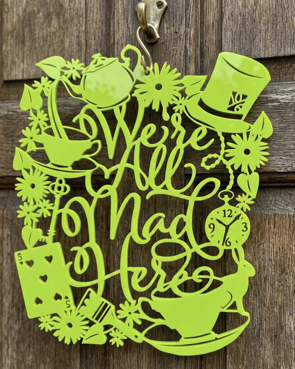 Bạn là một fan cứng của câu chuyện Alice in Wonderland và muốn mang không gian đầy phép thuật vào ngôi nhà của mình? Mẫu thiết kế 2D với dòng chữ "We're All Mad Here" này chính là món đồ trang trí 3D hoàn hảo dành cho bạn. Sản phẩm được thiết kế với các đường nét tinh xảo, tái hiện lại những biểu tượng kinh điển như chiếc mũ của Mad Hatter, đồng hồ quả quýt, lá bài tây, ấm trà và cả chú thỏ trắng, tất cả bao quanh thông điệp đầy cảm hứng về sự sáng tạo và khác biệt.