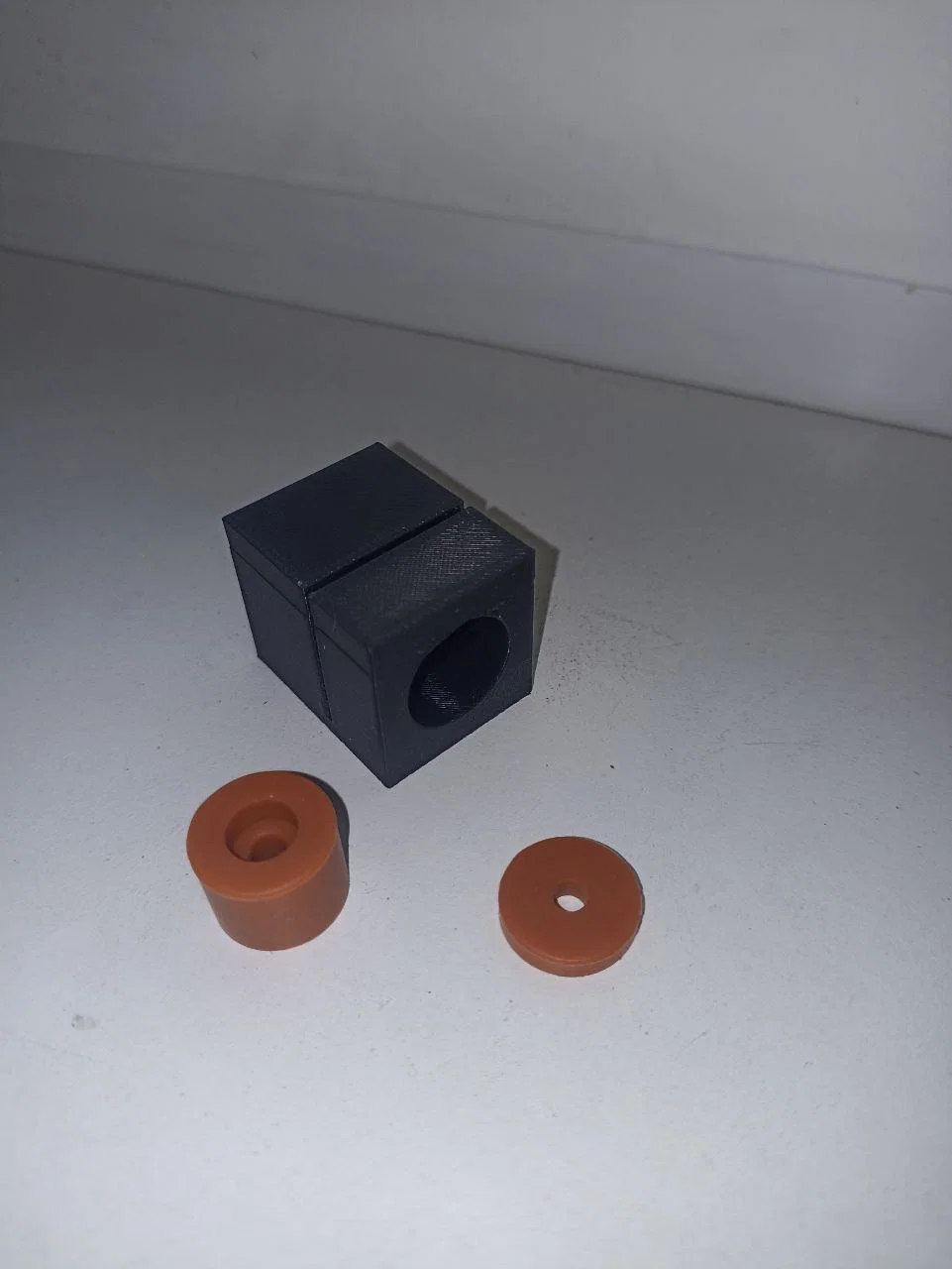 Mình làm cái món này để hỗ trợ cắt gọt miếng đệm silicon từ 16mm xuống còn 12mm bằng dao rọc giấy, loại mà mình dùng cho con máy Qidi Q2. Đúng là mình có tính toán hơi lệch một chút nên sau khi cắt nó vẫn dư ra hơn 12mm một xíu, nhưng với mình thì dùng vẫn ổn, vết cắt tuy không được hoàn hảo tuyệt đối nhưng nhìn chung là rất đạt yêu cầu rồi. Nếu cần, các bạn cứ thoải mái chỉnh sửa file cho vừa ý hơn nhé. Mình in bằng nhựa PETG, infill 100%, dùng nozzle 0.4, layer height 0.2 và không cần dùng support. Ở phía sau có 2 cái lỗ để sau khi cắt xong, các bạn có thể chọc vào để đẩy miếng đệm ra cho dễ.