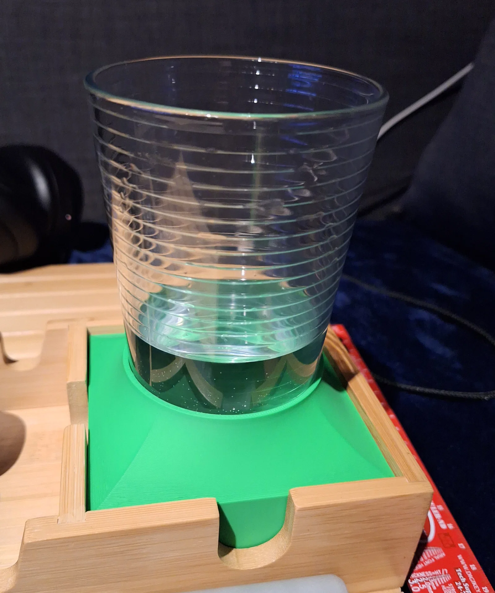 Đế chống đổ cho ly nước vì mình đã làm đổ quá nhiều ly nước đầy chỉ vì vướng dây tai nghe hoặc dây bàn phím. Kể từ khi thiết kế và thử nghiệm các mẫu này, mình chưa hề làm đổ ly lần nào, dù cho mình có cố tình làm vậy!