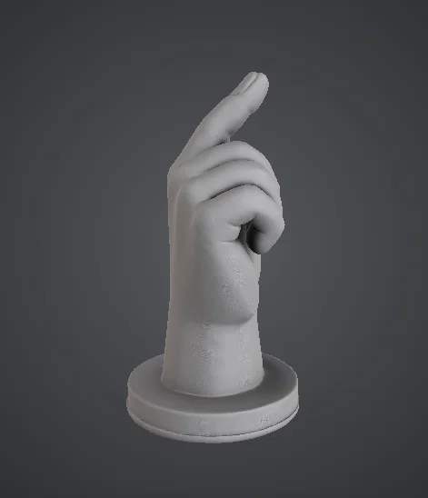 Mẫu điêu khắc cử chỉ bàn tay này mang đến một hình ảnh chân thực, rõ nét của bàn tay người trong tư thế chỉ tay đặc trưng. Mô hình nắm bắt được các chi tiết giải phẫu tinh tế, bao gồm cấu trúc ngón tay, các khớp xương và tỷ lệ tự nhiên, đồng thời giữ bề mặt mượt mà, tối giản để đảm bảo quá trình in 3D diễn ra ổn định.