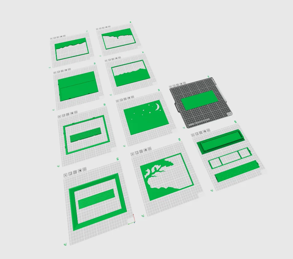 - 5 lớp diorama: Tốt nhất là in mỗi lớp một màu khác nhau để tạo chiều sâu.