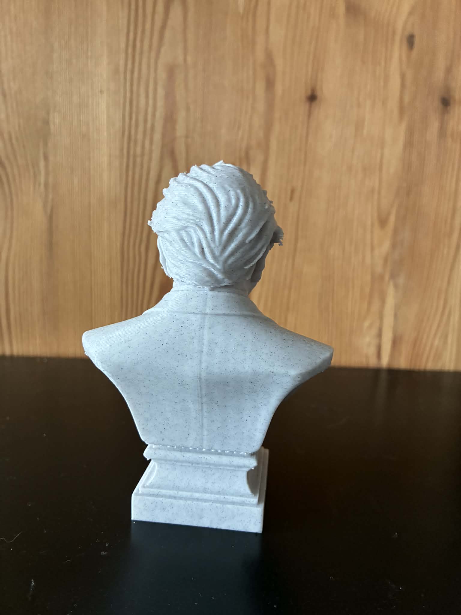 Mô hình in 3D này thể hiện phong cách điêu khắc cổ điển, với các khối hình được trau chuốt kỹ lưỡng và đường nét rõ ràng, trung thành với thẩm mỹ truyền thống của các mẫu tượng bán thân. Đây là một tác phẩm tri ân vượt thời gian dành cho người đàn ông đã đưa nhân loại đến gần hơn với thiên nhiên.