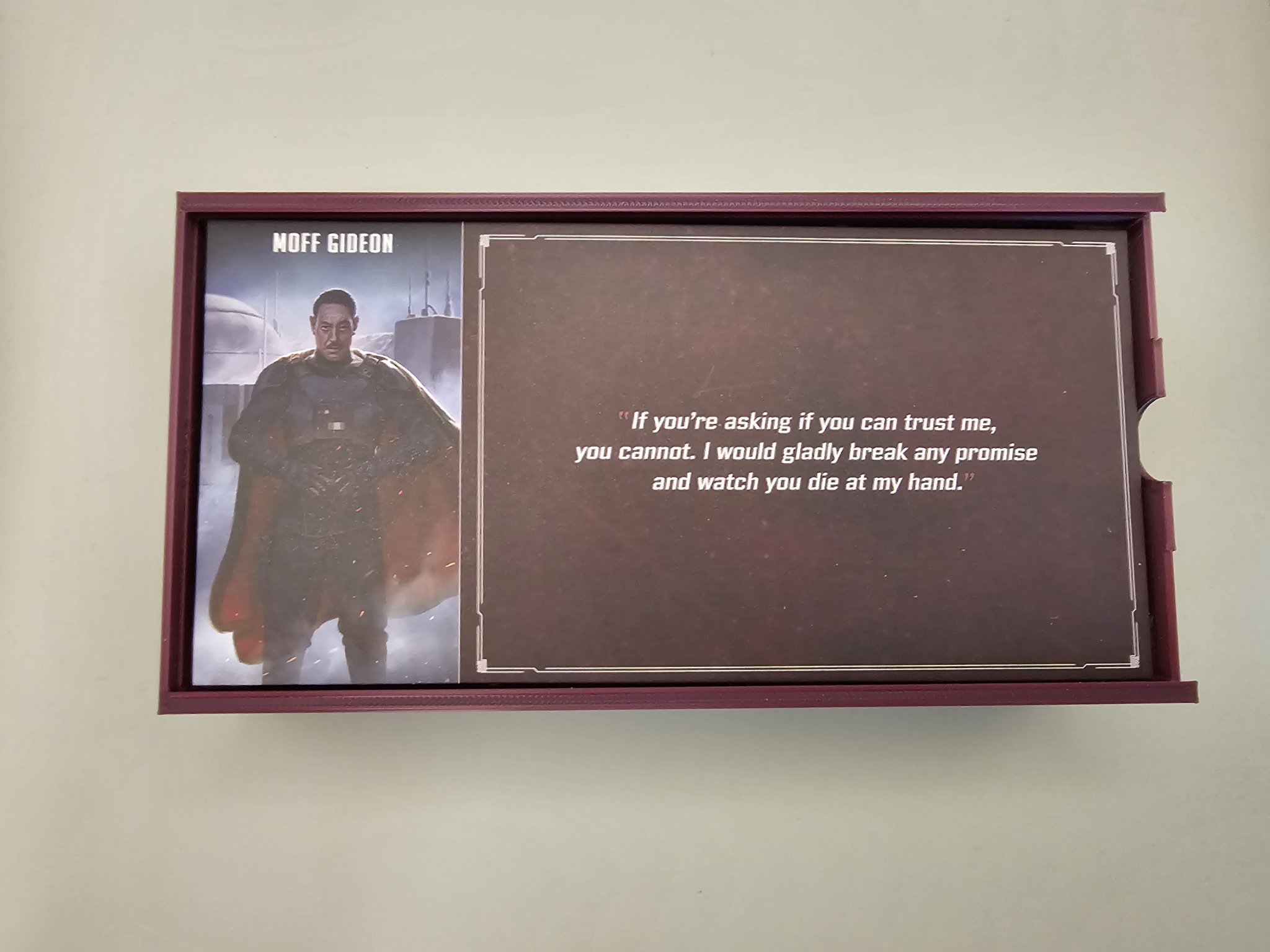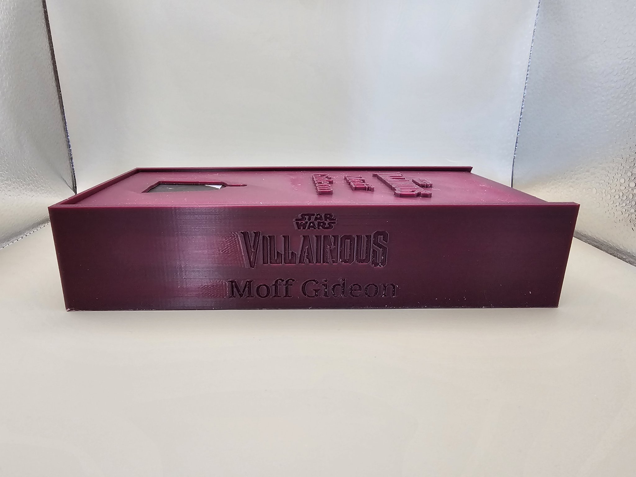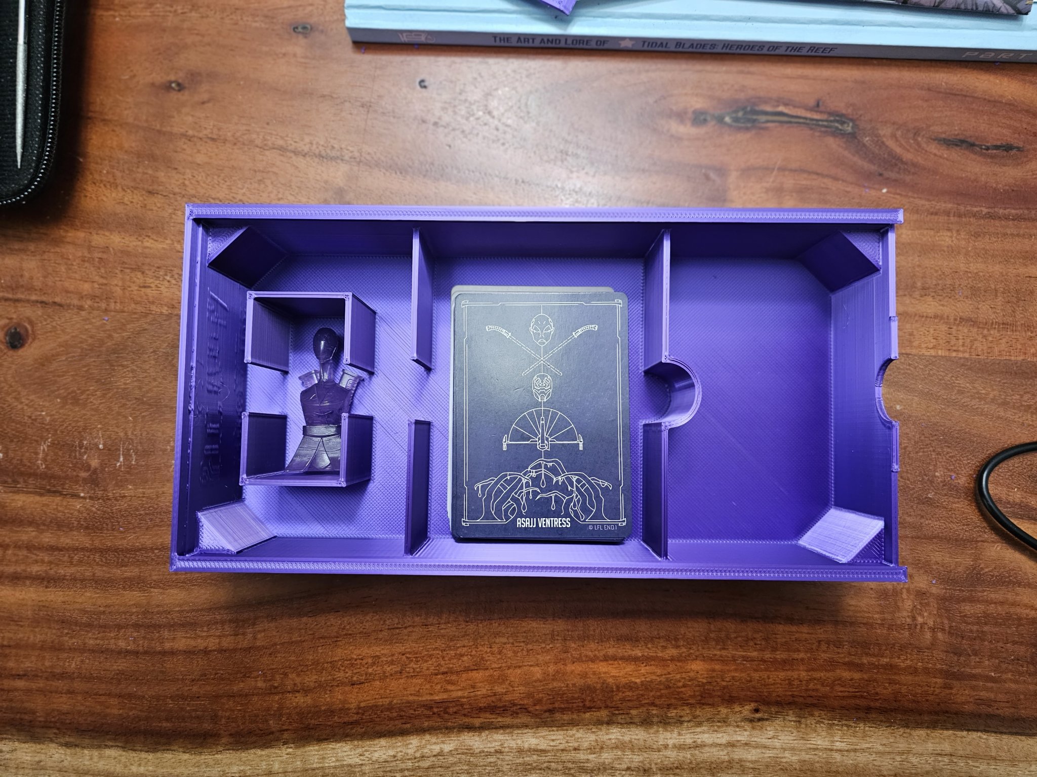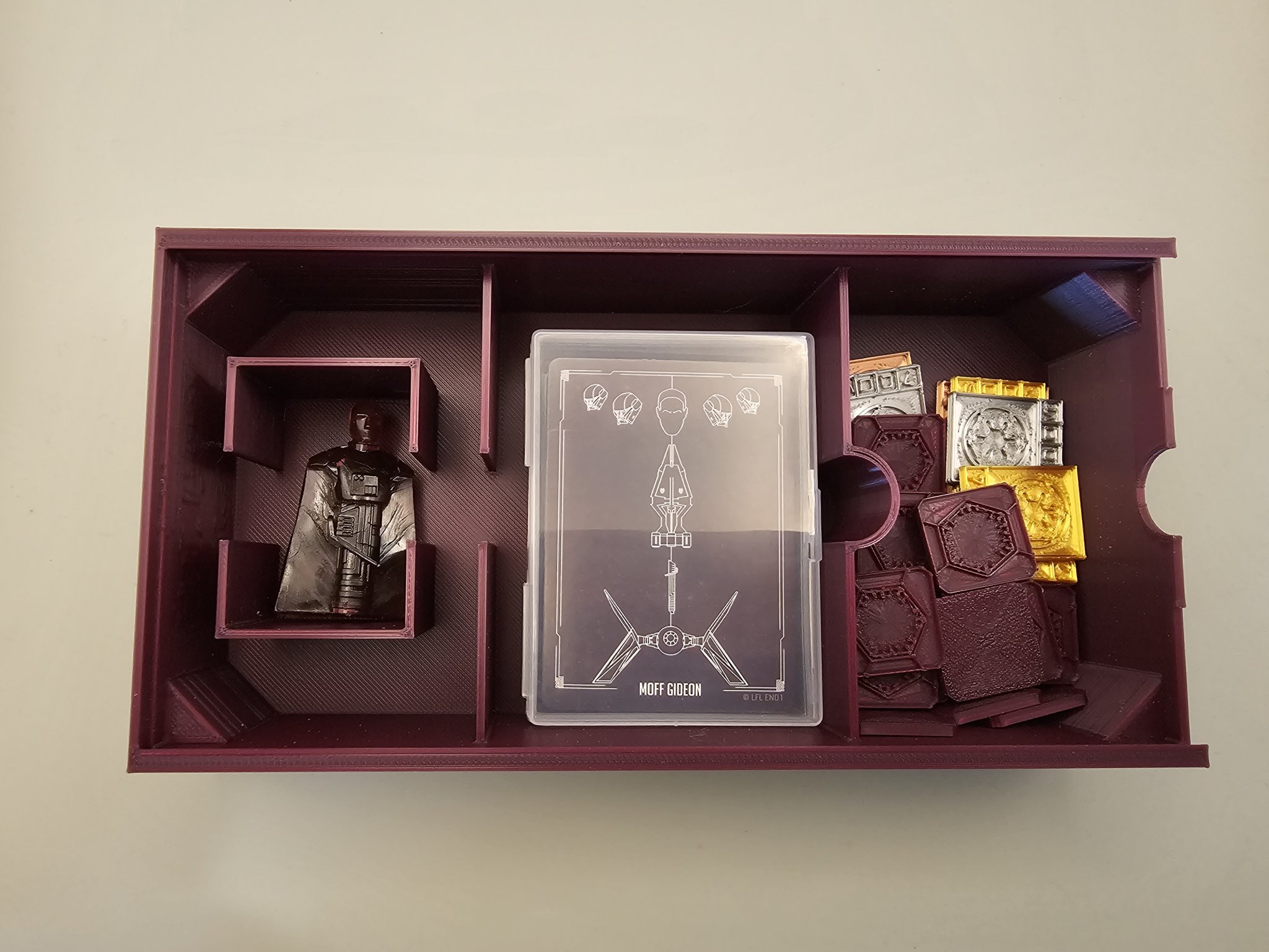 - Cấu hình bên trong đã được thay đổi. Tôi đã tách khoang thành 3 phần chính. Một phần cho nhân vật di chuyển, một phần cho bộ bài, có thể chứa một bộ bài có bao hoặc một hộp nhựa, và phần cuối cùng để chứa bất kỳ và tất cả các token cho nhân vật. Phần này đủ lớn để chứa bất kỳ token tùy chỉnh nào mà bạn có thể có.