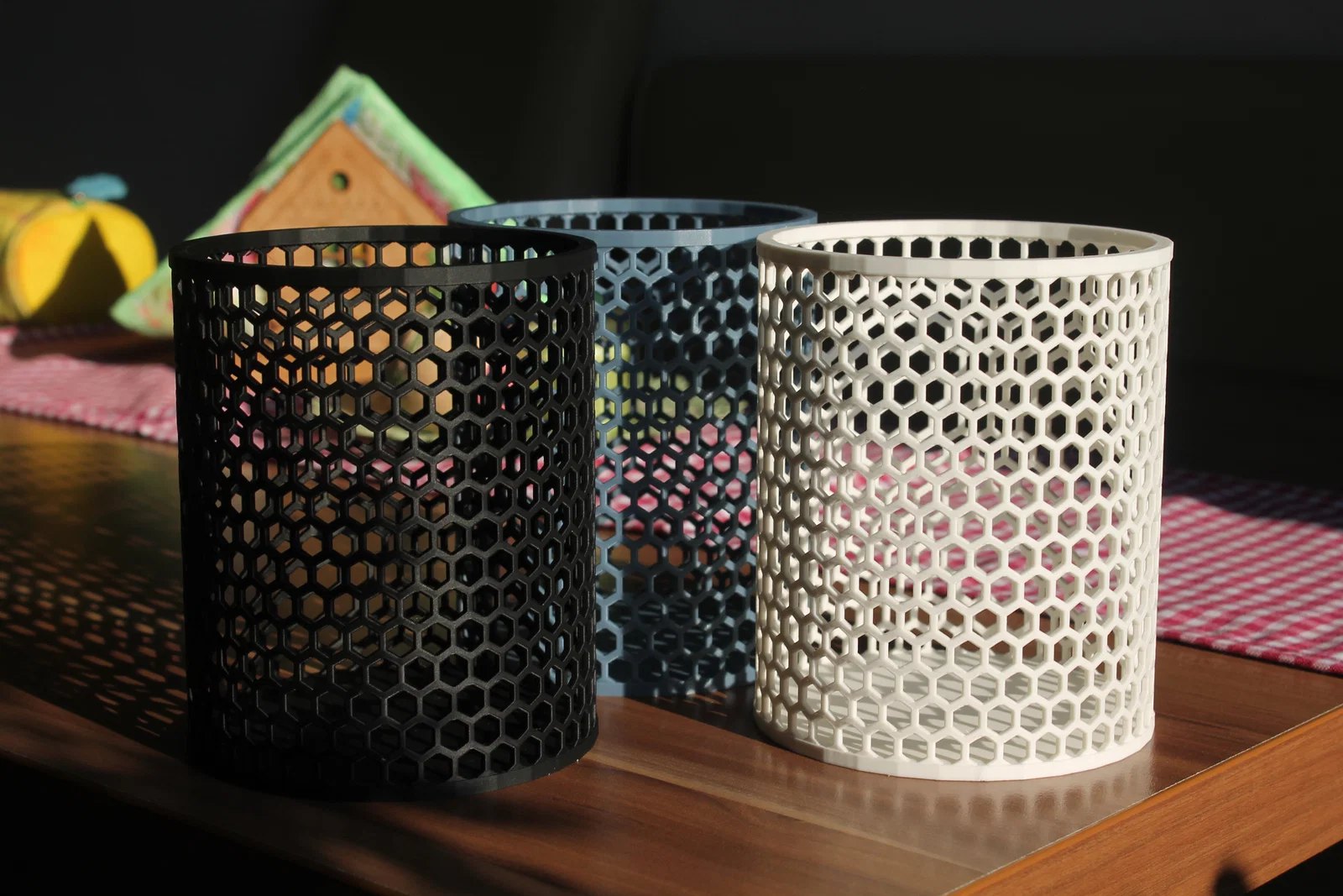 Chiếc khay đựng đồ với thiết kế họa tiết tổ ong đẹp mắt, chắc chắn và cực kỳ đa năng. Sản phẩm đi kèm nắp đậy tinh tế, phù hợp làm đồ trang trí hoặc đựng văn phòng phẩm, vật dụng nhà bếp rất tiện lợi.