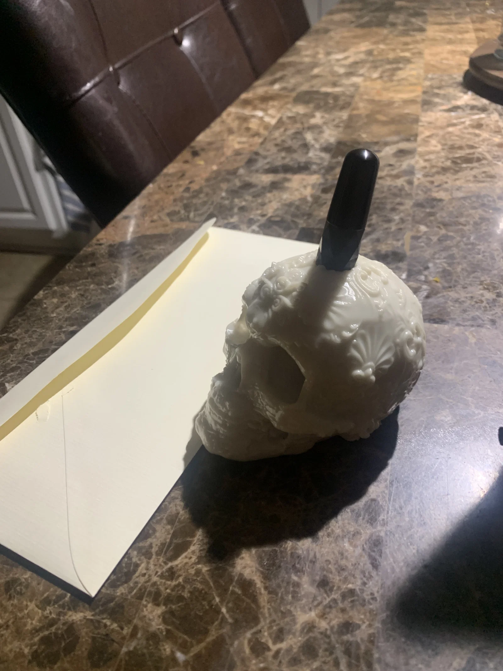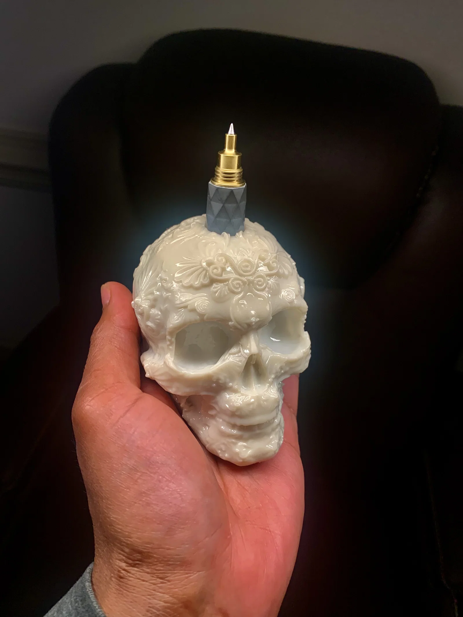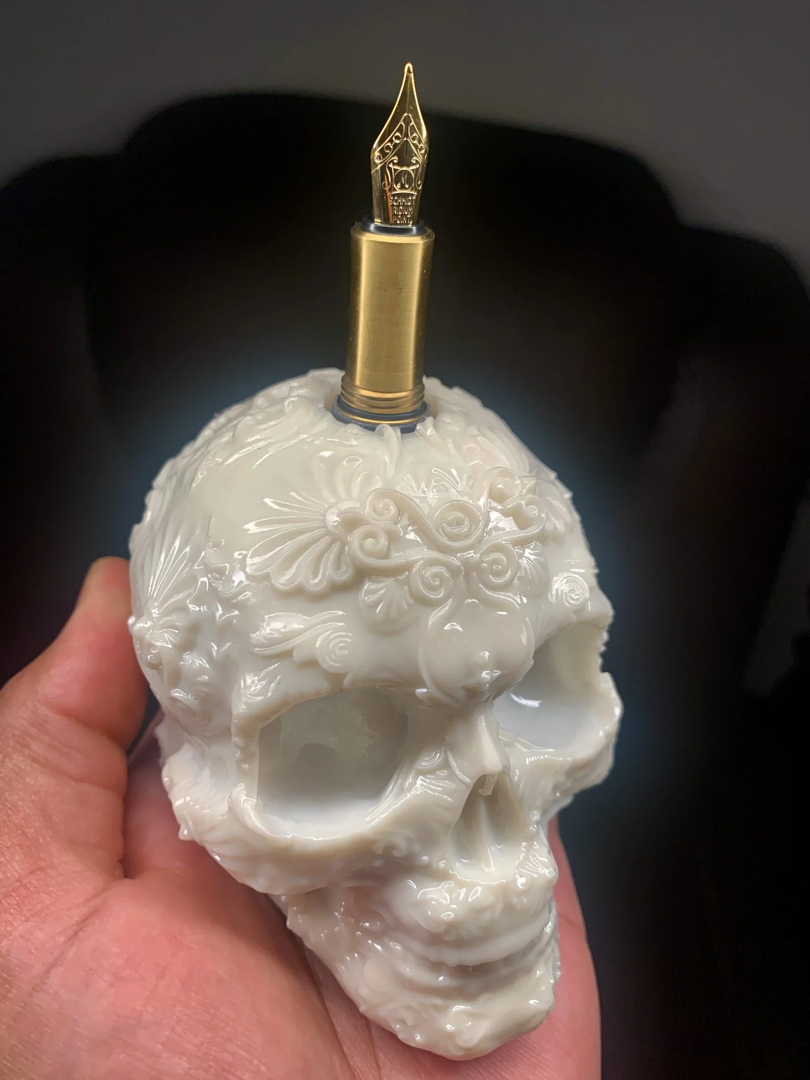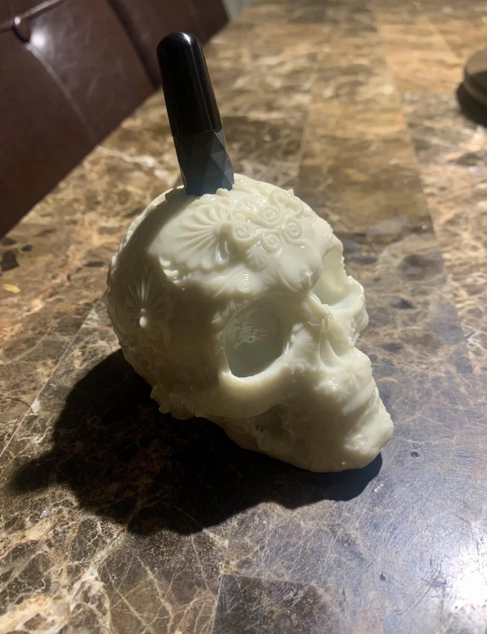 Mẫu thiết kế được cải tiến từ đầu lâu Dia de Los Muertos để làm ống cắm bút cực chất. Sản phẩm in đặc chắc chắn, phù hợp làm quà tặng để bàn. Anh em dùng máy in filament hay resin đều có thể in được mẫu này một cách dễ dàng.
