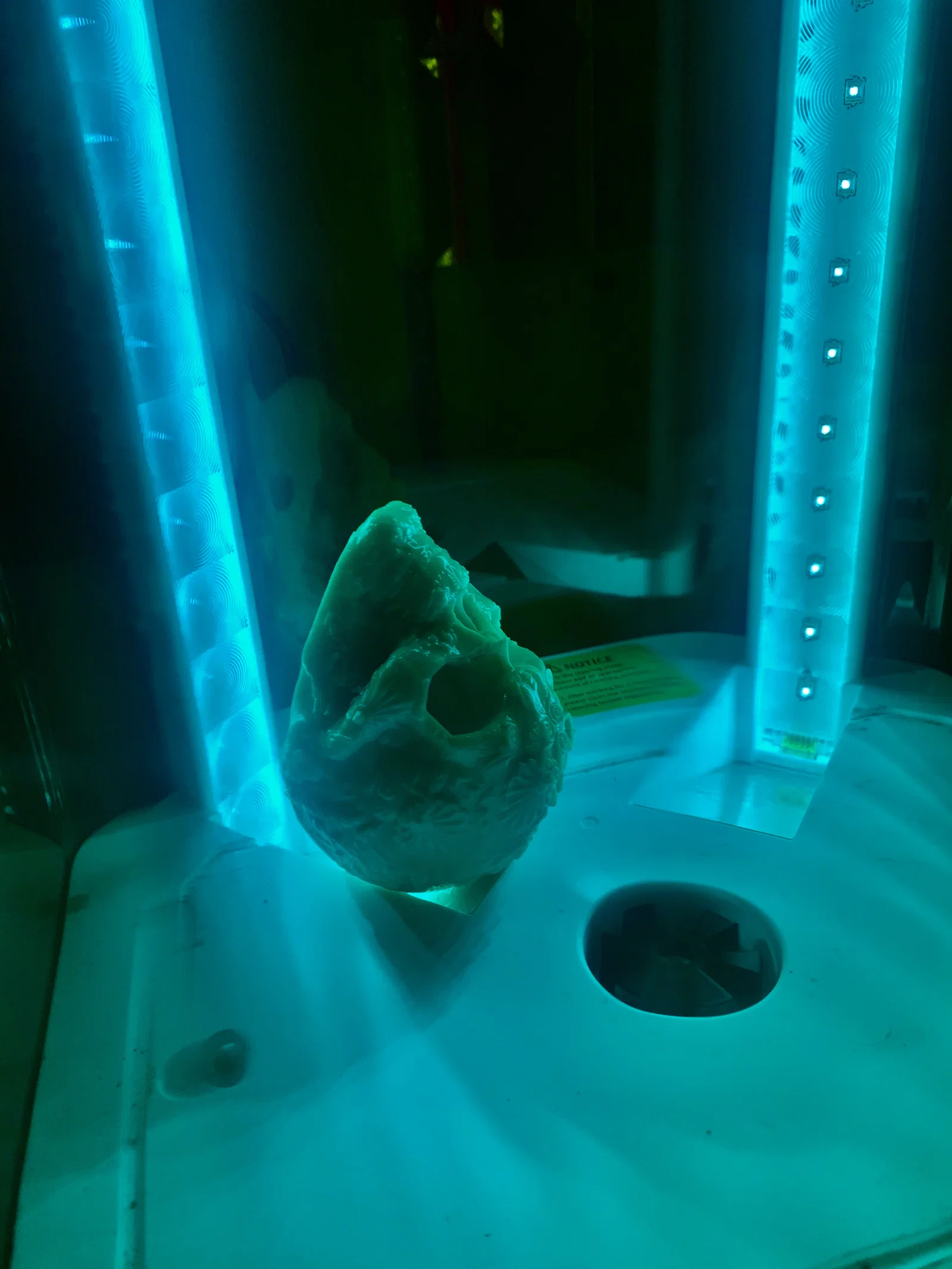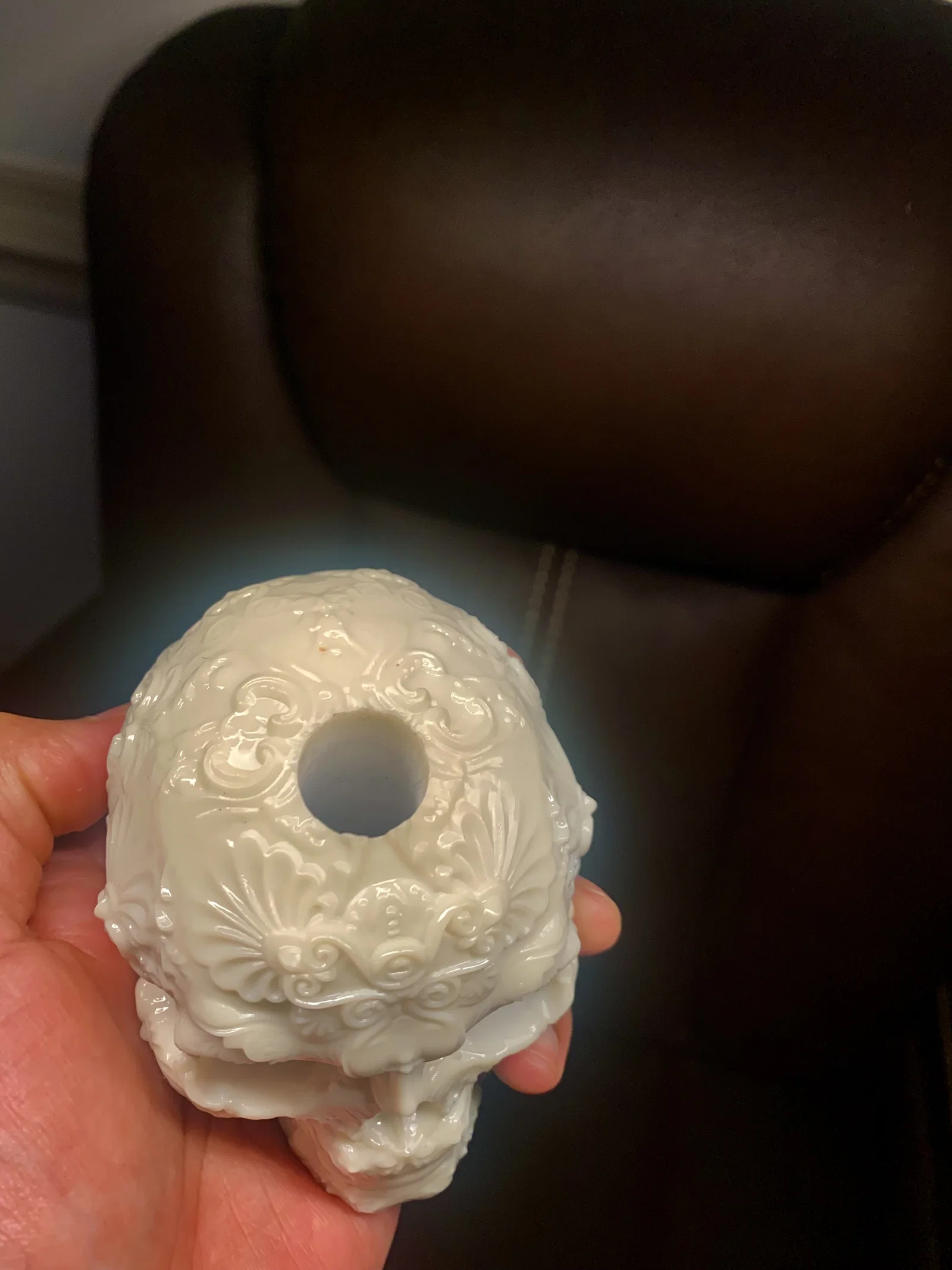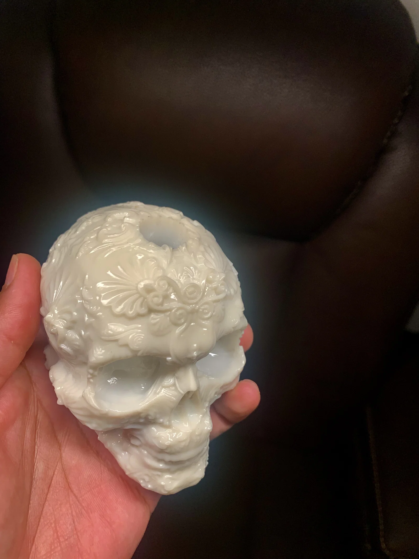 Đây là phiên bản chỉnh sửa từ mẫu đầu lâu Dia de Los Muertos trước đó (29FLO.COM) mà mình đã dùng làm ống cắm bút tặng cho cô em gái nhỏ. Mình in với kích thước nguyên bản và không làm rỗng bên trong, mặc dù việc dùng support sẽ giúp ích rất nhiều cho các chi tiết nhô ra. Do khối lượng của đầu lâu đặc khá nặng, phần lỗ cắm bút không chỉ sâu 65mm như dự tính ban đầu mà xuyên suốt hết chiều cao luôn. Lỗ cắm rộng 16mm, nhưng anh em nhớ lưu ý độ co rút khi đem đi phơi UV nếu dùng máy in resin giống mình nhé. Máy in filament thì chắc chắn sẽ in ngon lành thôi. Mẫu này làm quà tặng thì tuyệt vời, đặc biệt là khi kèm theo một cây bút xịn. Chúc anh em in vui vẻ...