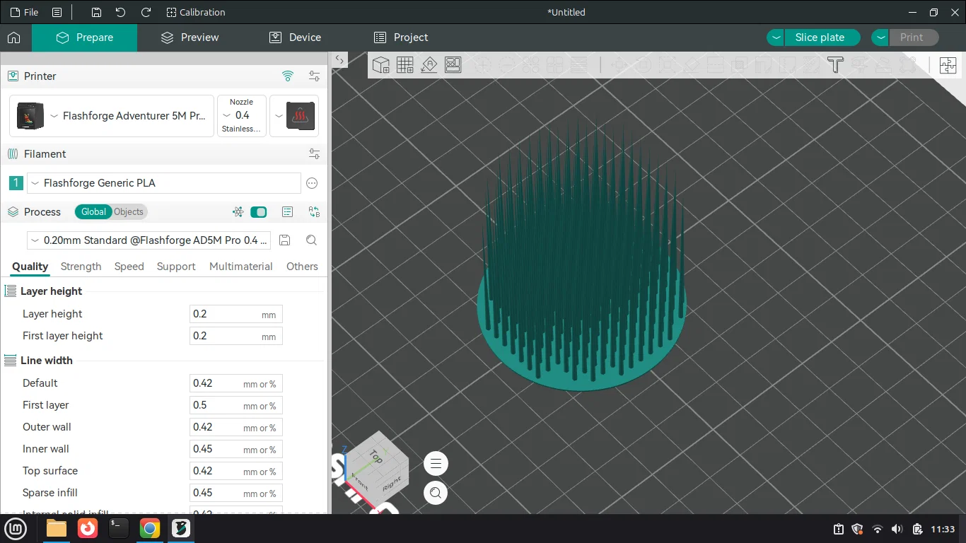 - Độ phân giải layer: Nên để layer height khoảng 0.2mm hoặc thấp hơn để bề mặt các sợi cỏ được mịn và chi tiết.