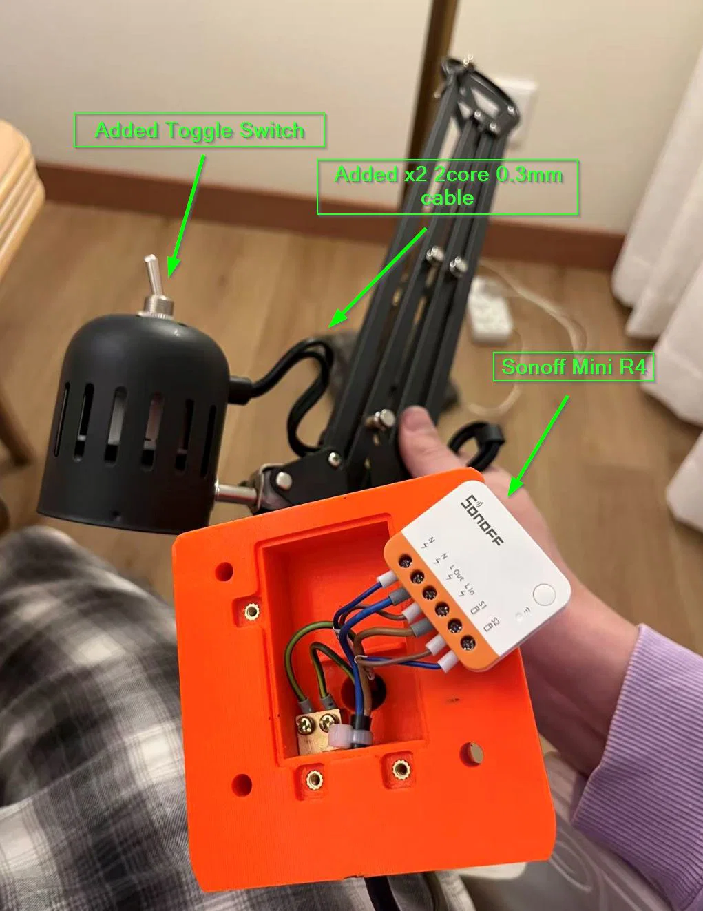 Mẫu đế gắn tường tùy biến cho đèn IKEA TERTIAL giúp tích hợp nhà thông minh. Thiết kế yêu cầu sửa đổi nâng cao, bao gồm quản lý dây, vòng bi KSEN, ốc cấy M3 và hỗ trợ thiết bị Sonoff.