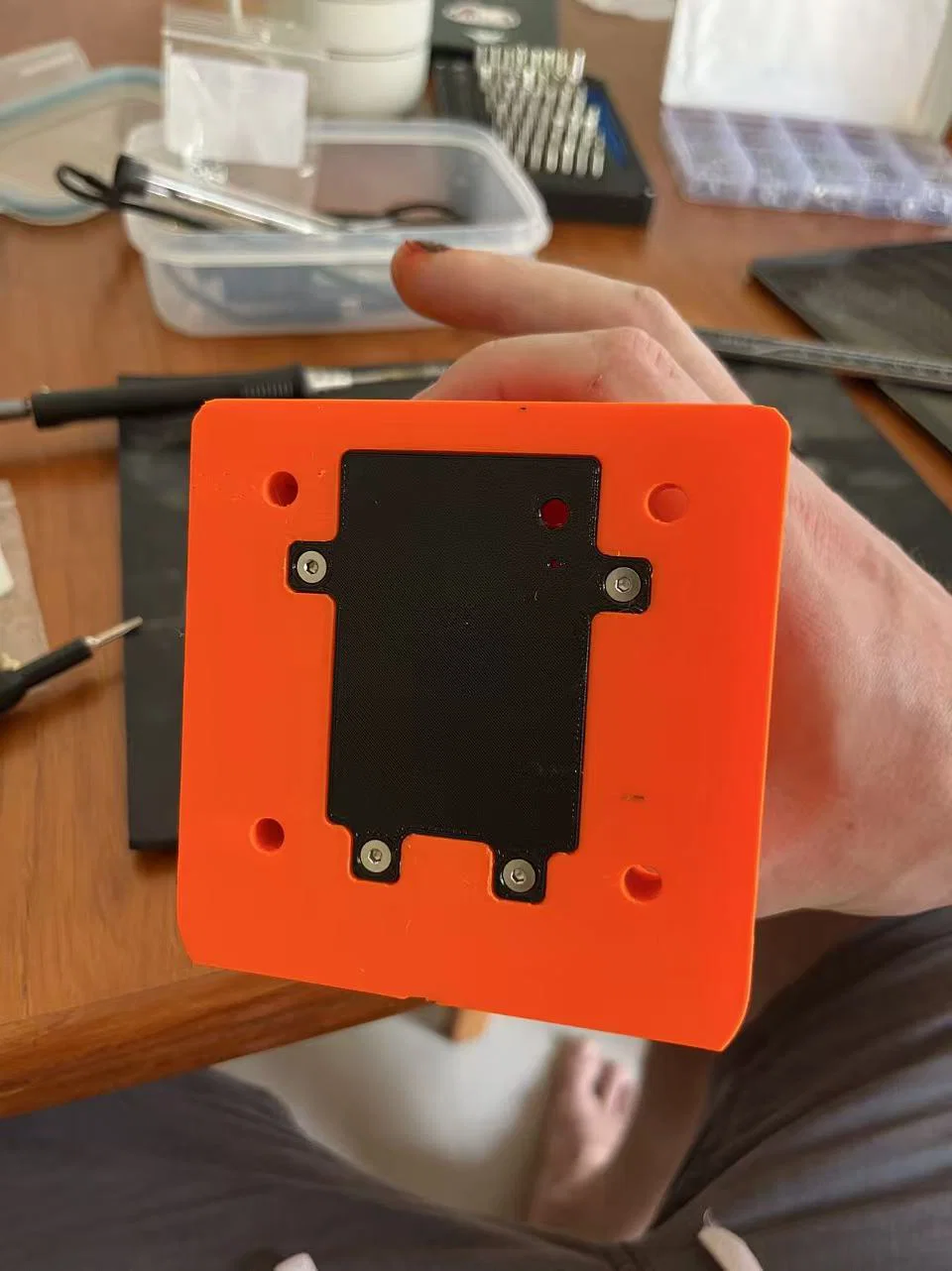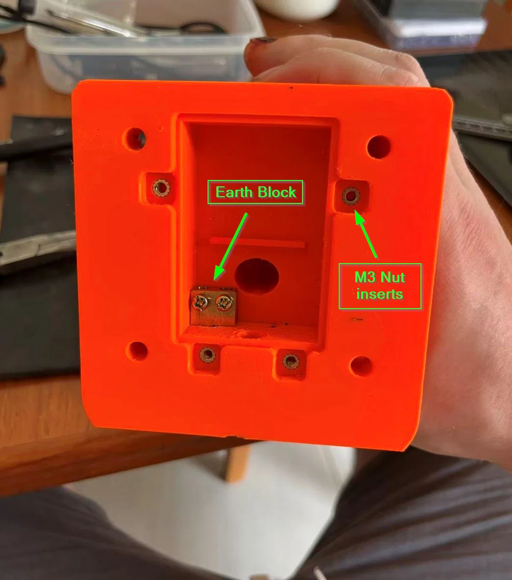• Ốc cấy M3 (Inserts) — Nắp sau của đế cần 4 ốc M3. Phần đế đã có sẵn lỗ chờ cho ốc cấy nhiệt M3.