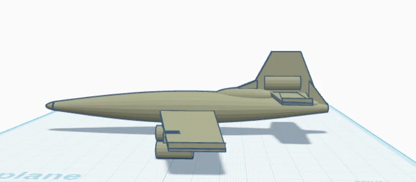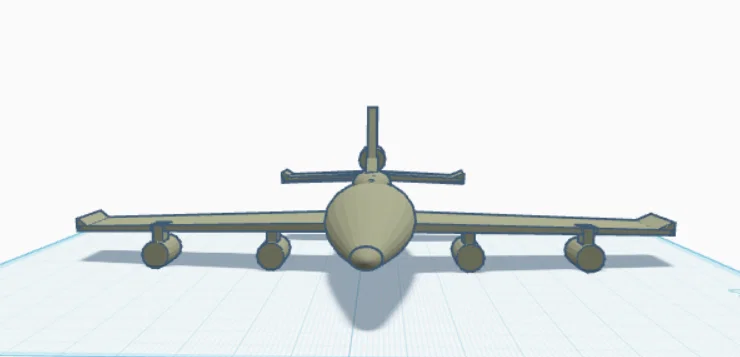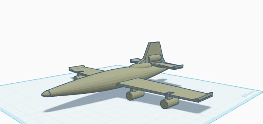 Được thiết kế từ con số không trong Tinkercad bởi một người mới làm quen với phần mềm này khoảng 4 ngày. Các đặc điểm bao gồm: thân máy bay (cố tình làm vậy), cánh (cũng cố tình luôn), các đầu cánh winglet (rất cố tình và cực kỳ tự hào về mấy cái đó), bốn động cơ được gắn liền vào máy bay, một động cơ ở đuôi và phần mũi hình nón đã ngốn quá nhiều thời gian để hoàn thiện.