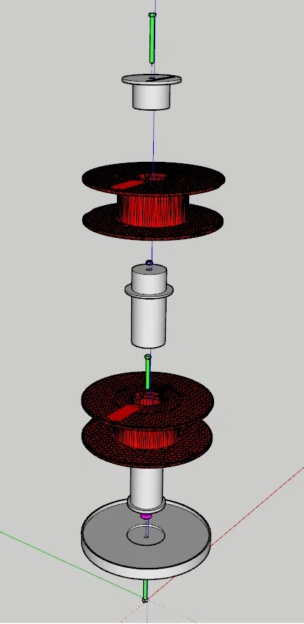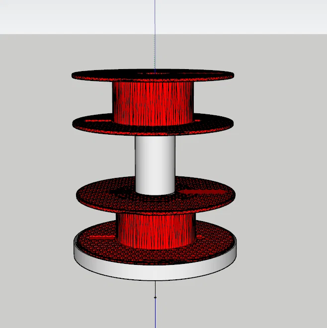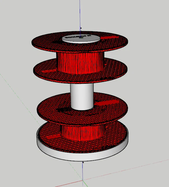 Đây là mẫu kệ xoay dùng để trưng bày hai cuộn dây một cách tiện lợi. Thiết kế này giúp bạn sắp xếp không gian làm việc gọn gàng hơn, bao gồm danh sách các linh kiện cần thiết như ốc vít và vòng bi để lắp ráp hoàn chỉnh.