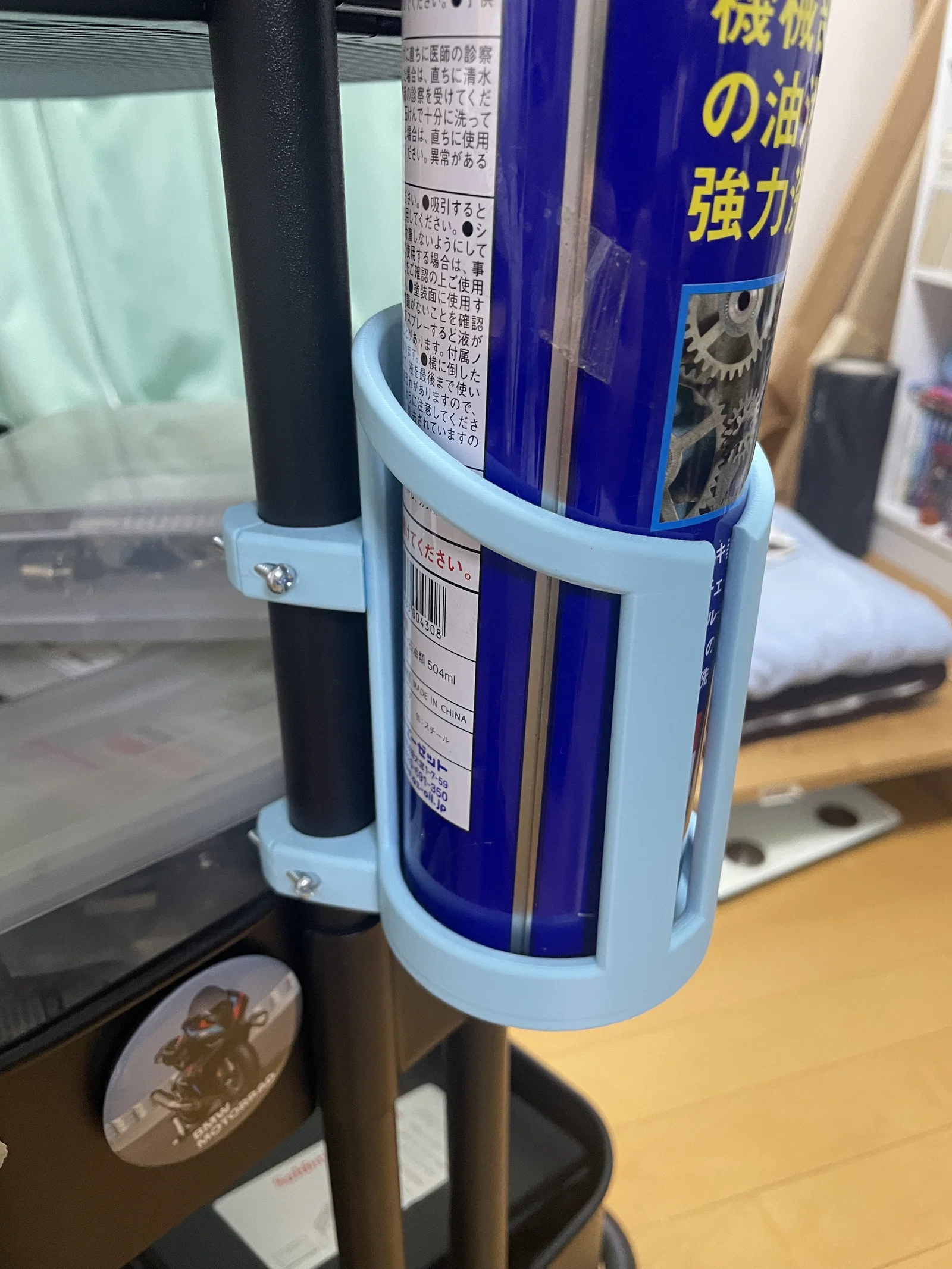 Một phụ kiện giá đỡ bình xịt tiện lợi, được thiết kế chuyên dụng cho các bình vệ sinh linh kiện đường kính 66mm, giúp gắn gọn gàng vào phần ống của xe đẩy đa năng IKEA RÅSKOG trong xưởng làm việc của bạn.