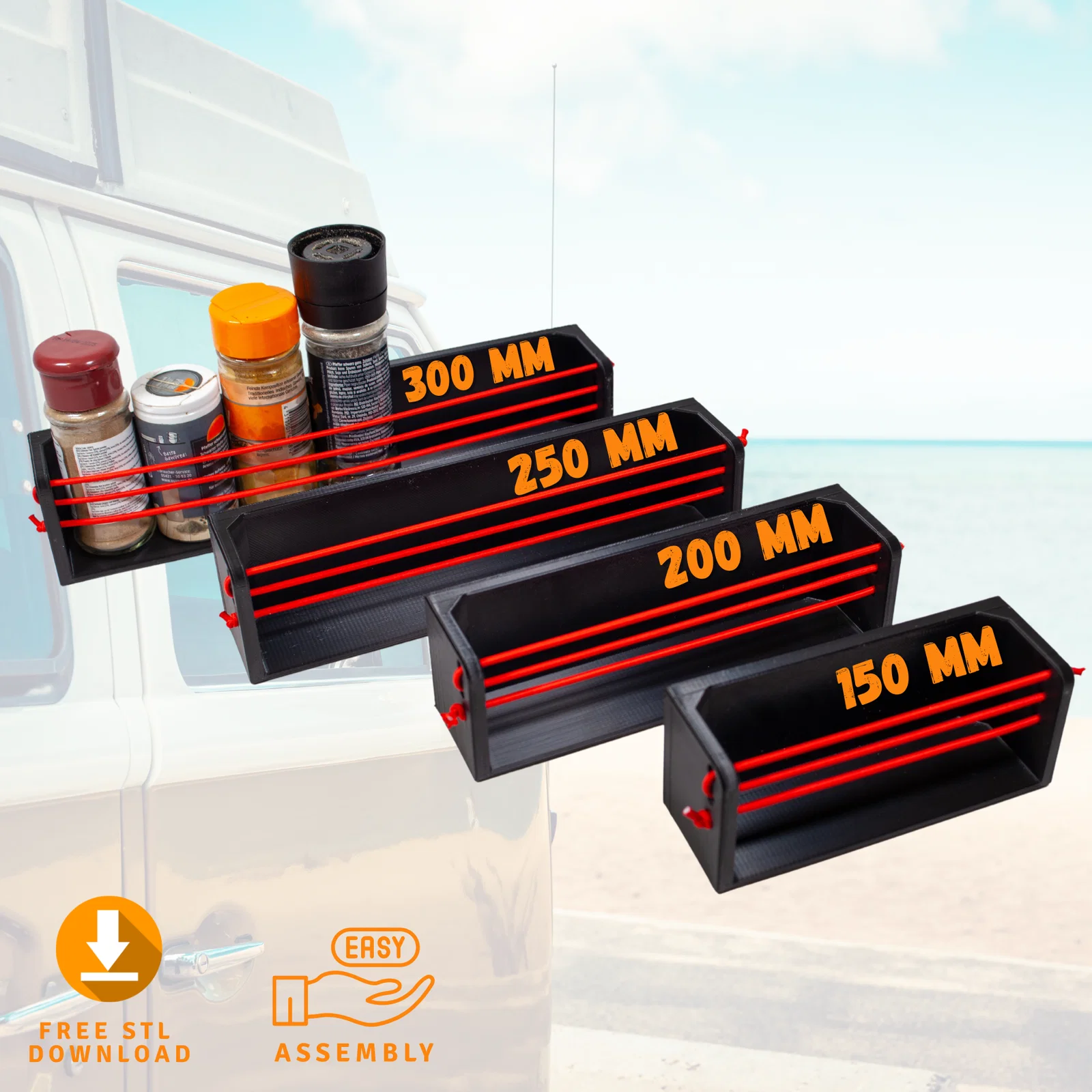 Kệ để gia vị được in 3D dành riêng cho xe motorhome, caravan và xe camper. Thiết kế này giúp tạo thêm không gian lưu trữ, giữ cho gia vị của bạn luôn trong tầm tay và gây ấn tượng với cấu trúc vô cùng chắc chắn.