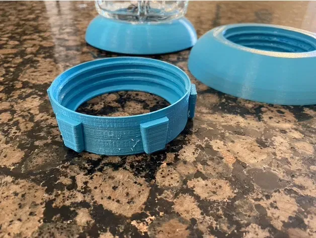 Cái nắp đế bình gốc có một họa tiết sóng trang trí xung quanh dưới đáy bên ngoài. Độ chính xác về độ dày vật liệu hơi chặt giữa các mảnh khóa và khoảng trống cho nắp, vì vậy tôi đã tăng đường kính của nắp lên một vài mm để cho phép các phần nhựa dày hơn. Nó vẫn vừa với đế (thực sự, có lẽ tự nhiên hơn một chút so với cái gốc), trong trường hợp của tôi.