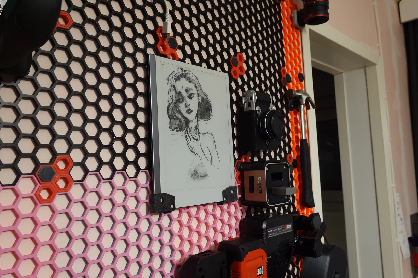 Giá treo tường dành cho máy tính bảng reMarkable 2 trên hệ thống Honeycomb Storage Wall, được thiết kế tiện lợi với khe cắm sạc USB-C. Sản phẩm đi kèm đầy đủ file nguồn để bạn dễ dàng chỉnh sửa và in ấn theo nhu cầu.