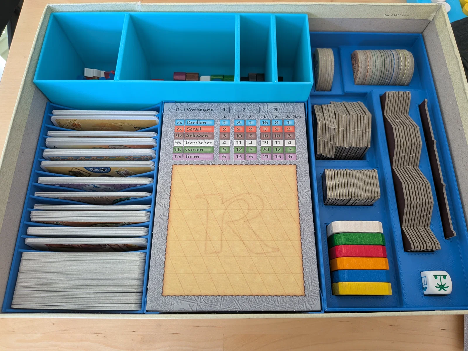 Dự án này giúp bạn thu gọn toàn bộ nội dung của Alhambra Big Box (Game gốc + 5 bản mở rộng) vào một chiếc hộp nhỏ gọn hơn. Tận dụng chính vỏ hộp cũ để làm khay chứa tiện lợi, giúp tiết kiệm không gian và thời gian chuẩn bị mỗi khi chơi.