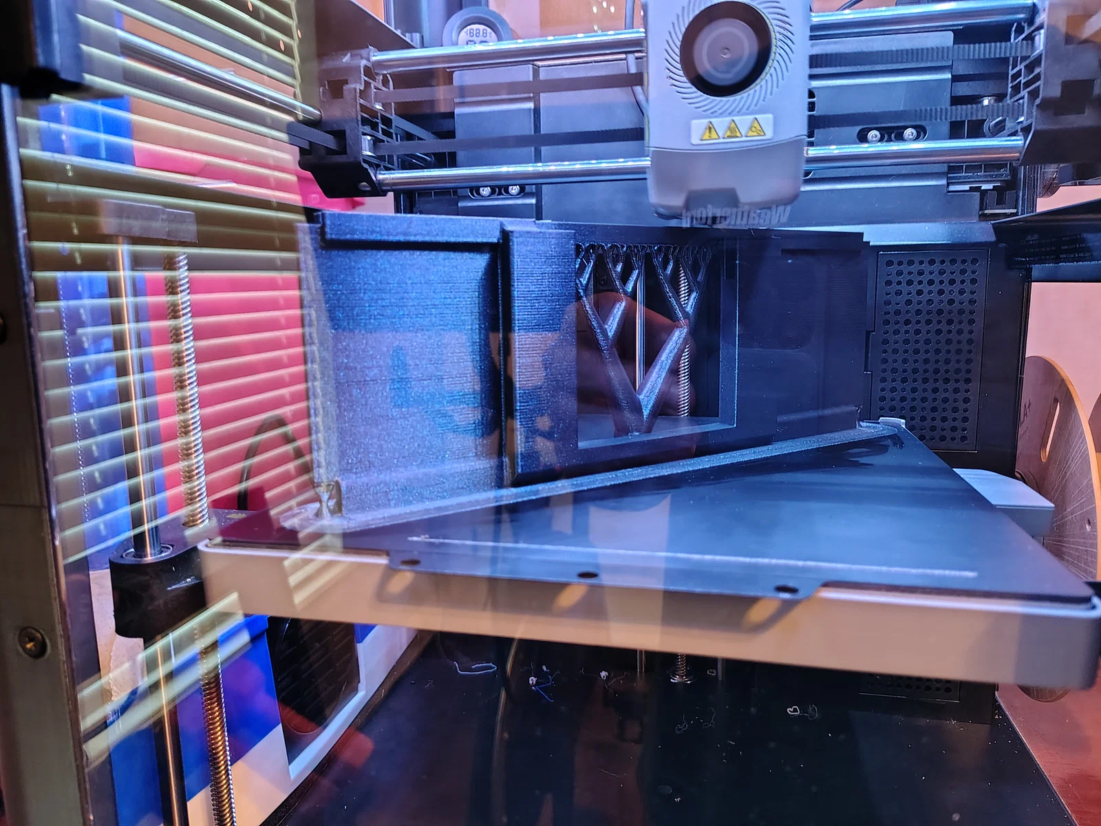 Tự thiết kế bộ sưởi buồng in cho Flashforge AD5X sử dụng PTC heater 600W. Giúp duy trì nhiệt độ ổn định khi in các loại nhựa kỹ thuật như ASA. Lưu ý: Không dùng nhựa PLA để in các phần khung chịu nhiệt.