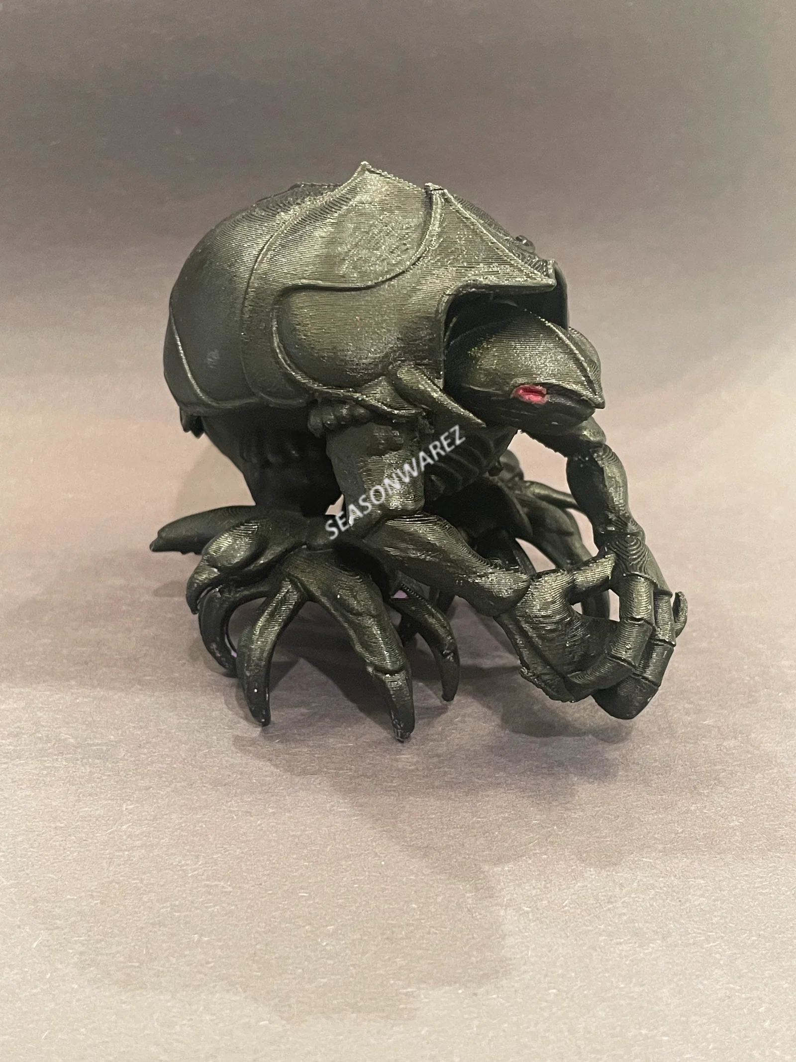 "Cánh tay vô tri của một tâm trí đang suy tàn." Hãy đối mặt với sự tàn bạo, máy móc của triều đại Skeksis qua mô hình Garthim với độ chi tiết cực cao này. Trong thế giới tâm lý của Thra, Garthim đại diện cho sự thiếu vắng bản ngã. Chúng không có thế giới nội tâm; chúng chỉ đơn thuần là những "Kẻ thực thi mù quáng" được tạo ra để duy trì ảo tưởng về sự kiểm soát của phe Skeksis thông qua việc áp bức hoàn toàn những kẻ khác (tộc Gelfling). Bản điêu khắc này nhấn mạnh vào trọng lượng tâm linh và những ranh giới không thể lay chuyển của chúng. Lớp vỏ tựa như đá obsidian được mô tả dày dạn, là bức tường không thể xuyên thủng—một ẩn dụ vật lý cho một tâm trí đã hoàn toàn đóng chặt với sự đồng cảm hay phát triển. Mô hình nắm bắt trọn vẹn giải phẫu học gai góc giống loài cua và sự hiện diện trống rỗng của chúng, đặc biệt là những chiếc càng nghiền nát nặng nề, đại diện cho sự chuyển hướng bạo lực của Bóng tối ra thế giới bên ngoài. Bức tượng này là một kiệt tác về khoảng không và kết cấu. Những hốc sâu tối tăm của lớp vỏ tạo nên sự tương phản rõ rệt với những chiếc chân nhọn hoắt đầy hung hãn. Đối với những người sơn mô hình, tác phẩm này là cơ hội để khám phá "Bảng màu Hư không"—chồng nhiều lớp tím đậm, đen và lớp tráng gương óng ánh để bắt trọn thứ năng lượng kỳ dị, phi tự nhiên vận hành những cấu trúc rỗng tuếch này. Đứng như một kẻ gác đền lặng lẽ, Garthim là lời nhắc nhở lạnh người về hậu quả khi một xã hội từ bỏ sự hướng thiện toàn vẹn để đổi lấy vũ lực thô bạo.