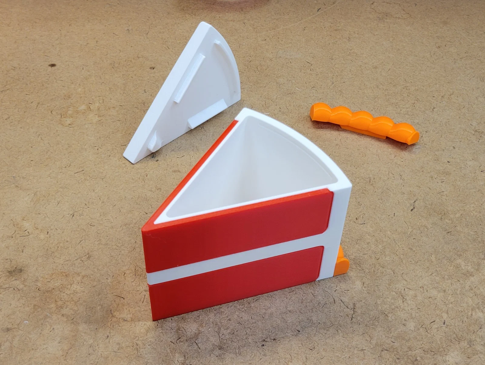 Một chiếc hộp đựng hình miếng bánh ngọt siêu xinh, thiết kế không cần ốc vít, dễ dàng in ấn và lắp ráp. Mẫu này có các tùy chọn trang trí rời hoặc liền khối, phù hợp để làm quà tặng hoặc đồ trang trí tiệc. File STEP và F3D đi kèm cho bạn thoải mái tùy chỉnh.