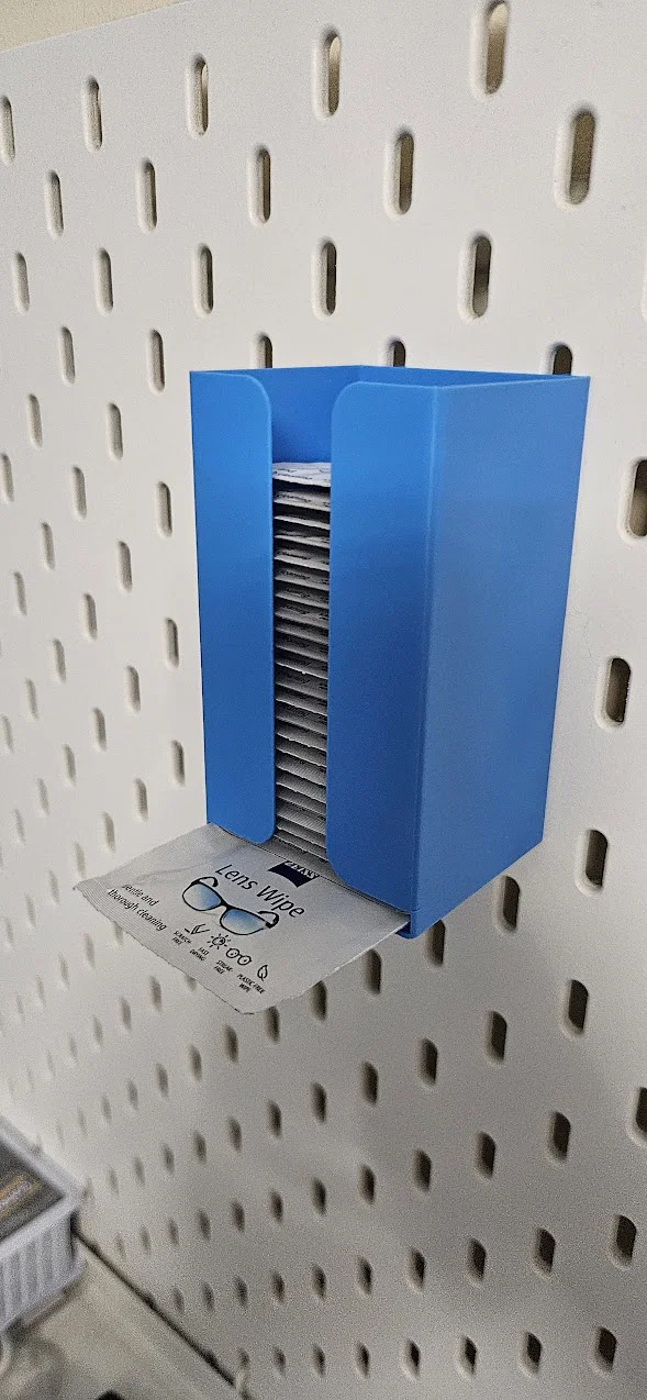 Bạn đang tìm cách sắp xếp các gói khăn lau kính Zeiss (Zeiss Lens Wipes) sao cho gọn gàng và dễ lấy ngay tại góc làm việc của mình? Chiếc khay đựng này là giải pháp in 3D hoàn hảo, được thiết kế riêng để gắn trực tiếp lên bảng IKEA Skadis. Thay vì để các gói khăn lau lộn xộn trong ngăn kéo hoặc trên bàn, giờ đây bạn có thể trưng bày chúng một cách chuyên nghiệp ngay tầm tay.