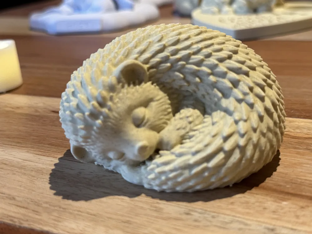 Chú nhím ngủ này là một món đồ trang trí dễ thương, lấy cảm hứng từ vẻ đẹp tĩnh lặng của rừng xanh. Với thiết kế cuộn tròn, kết cấu mềm mại và tối ưu cho việc in 3D, đây là món đồ lý tưởng để tô điểm cho không gian sống thêm ấm áp và bình yên.