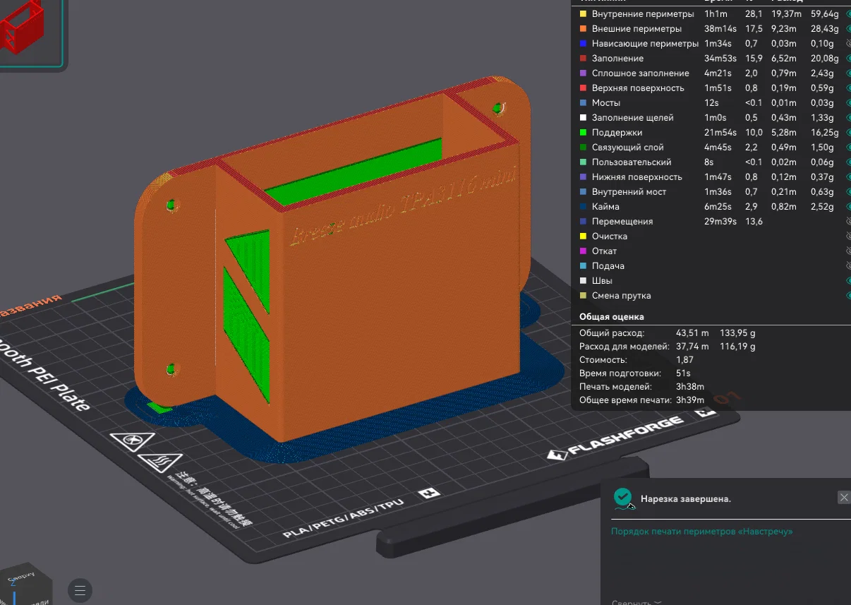 • Thiết lập in: Cài đặt 3 lớp vỏ (perimeters) để tăng cường độ cứng cho khung treo.